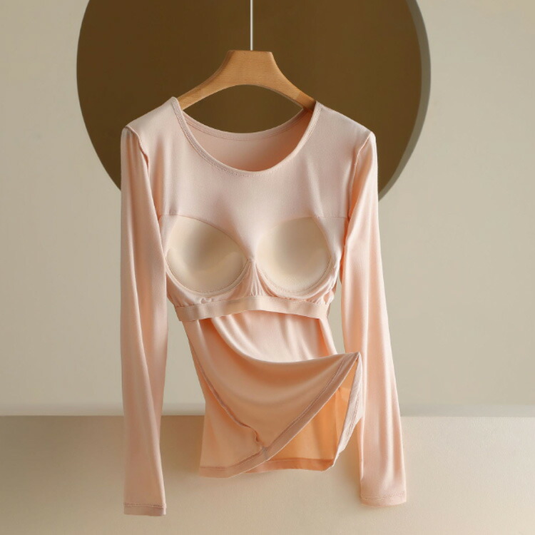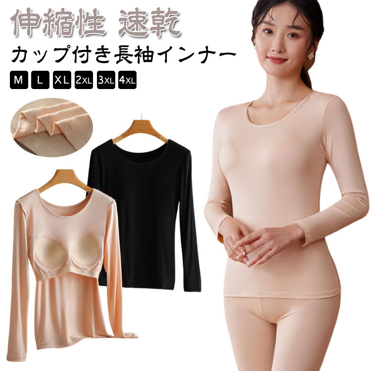 カップ付き インナー 長袖 レディース インナー 下着 ナイトウエア 大人気! ベージュ ブラック M L XL 2XL 3XL 4XL