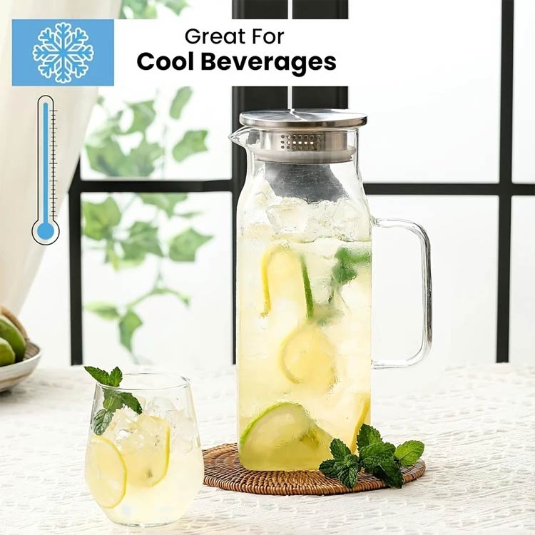 -20℃~150℃、耐熱ガラスので、温かい飲み物にも冷たい飲み物にも使える耐熱ガラス製のピッチャーです