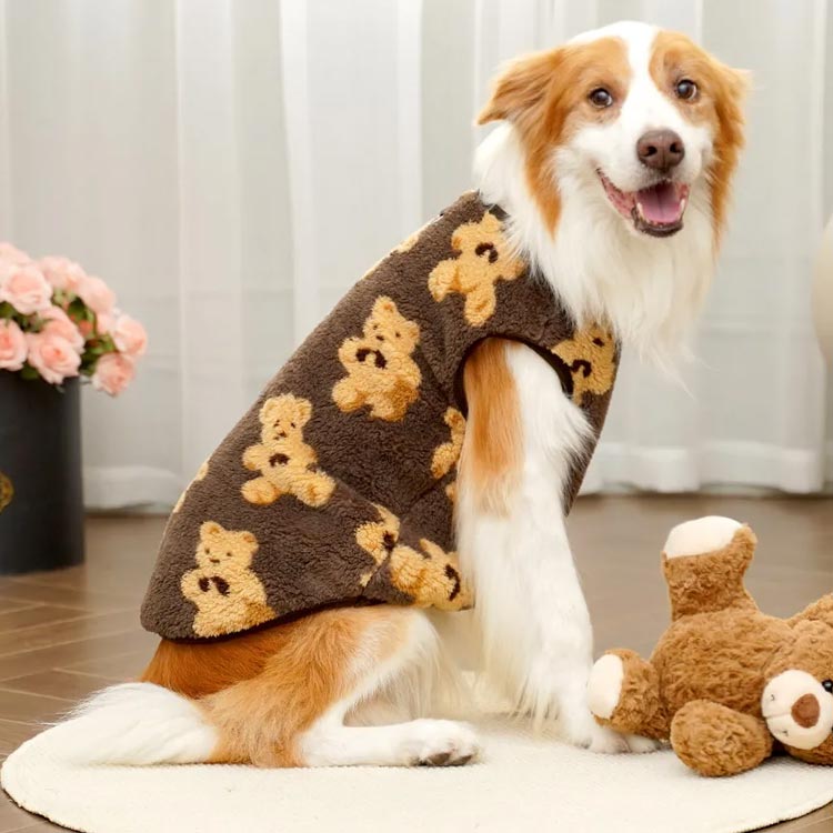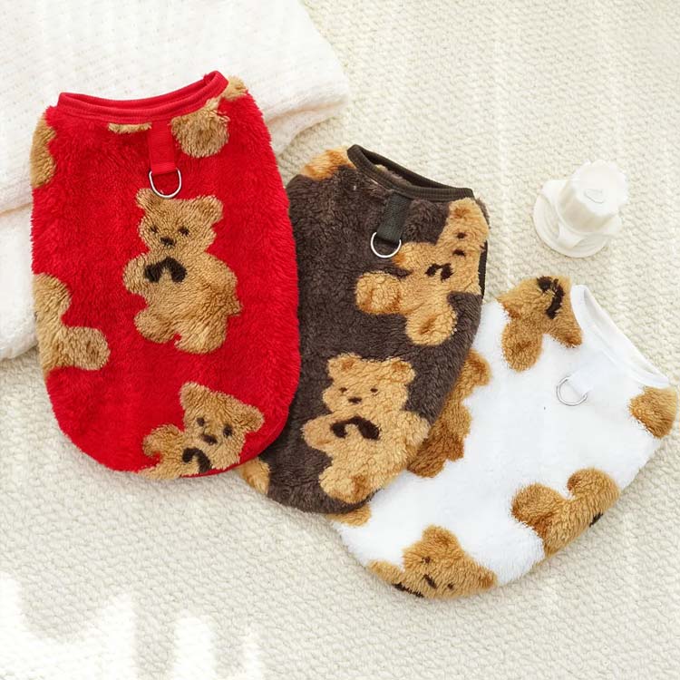 暖かいモコモコ素材の犬用クマ柄フリースTシャツが登場!