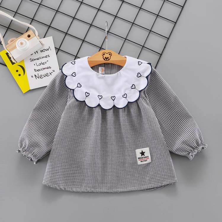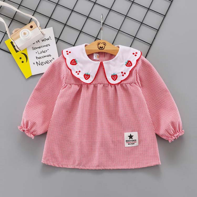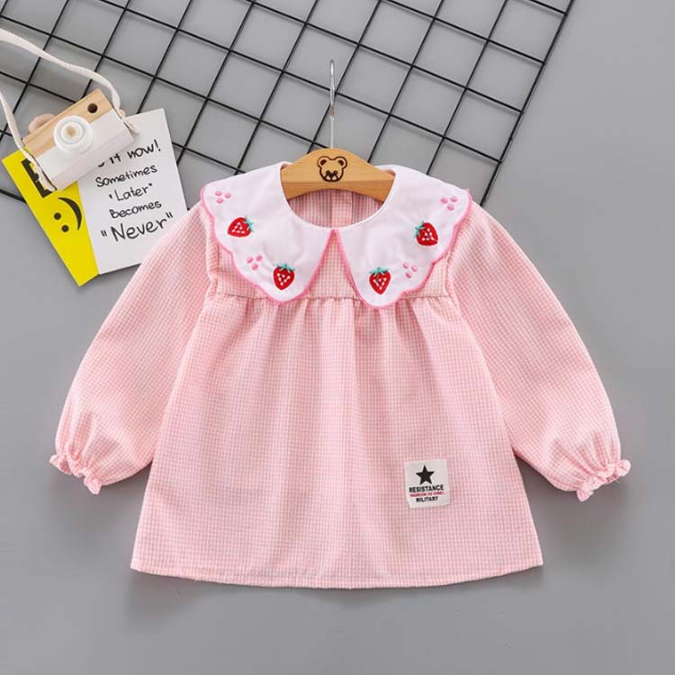 外遊び スモック 女の子 子供服 防水エプロン 刺繍 絵画 ベビースモック 子供 幼稚園 お砂場着 可愛い チェック柄 お食事 ブラウス 汚れ防止 エプロン 保育園 コッ 綿