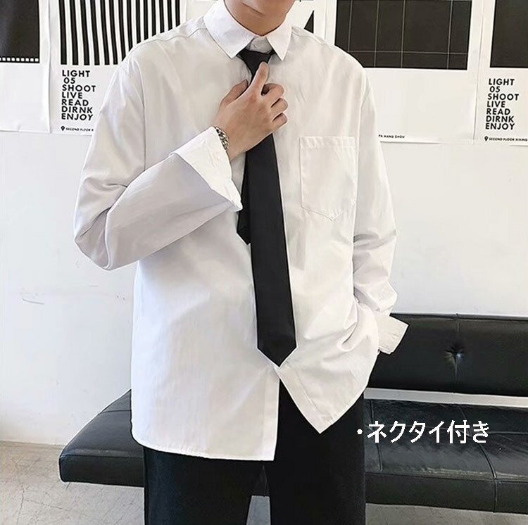 卒業式 ブラウス メンズ 韓国 ダンス 衣装 トップス k-pop 白 シャツ ネクタイ 長袖 黒 ダンス衣装 ネクタイおまけ おしゃれ ゆめかわいい ヒップホップ HIPHOP か 個性的