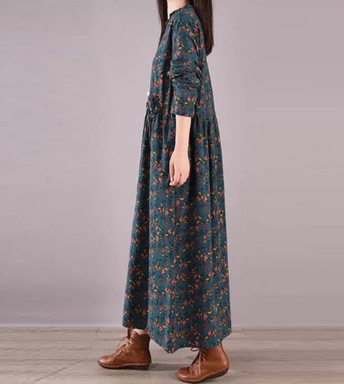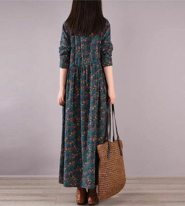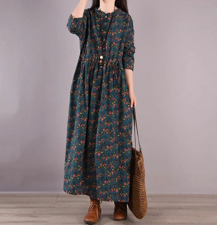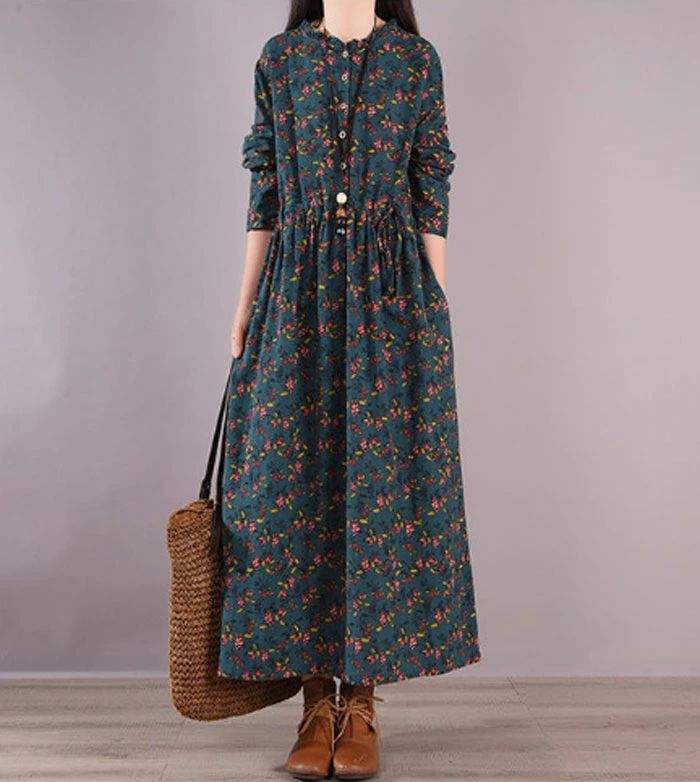 裏起毛 ワンピース ロングワンピース 秋冬 長袖 レディース シャツワンピース 裏起毛ワンピ ワンピ 綿 柄ワンピース ロング丈