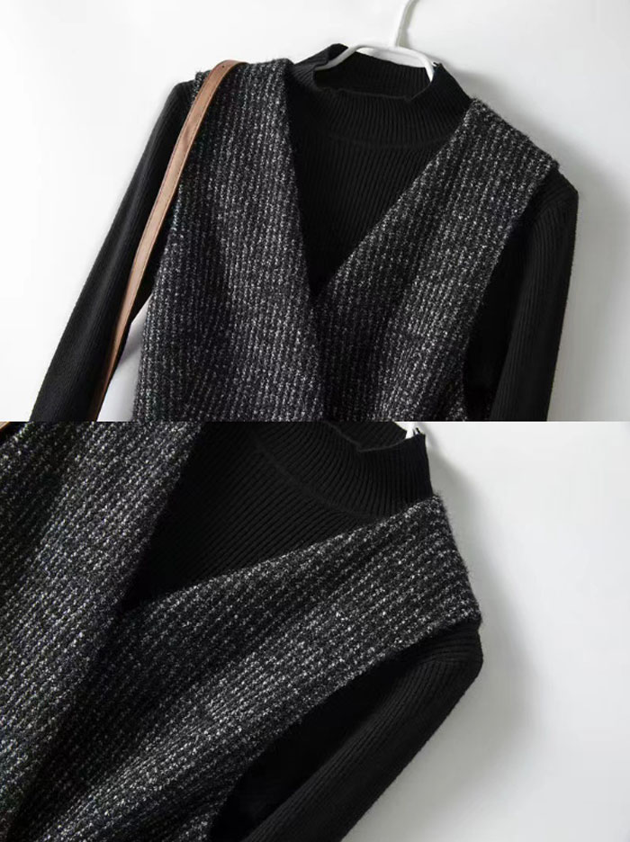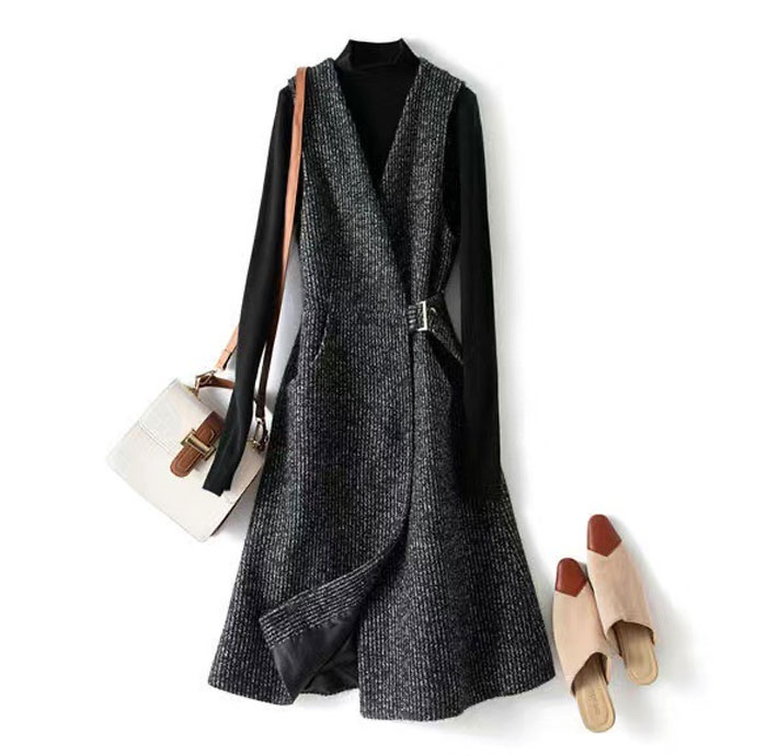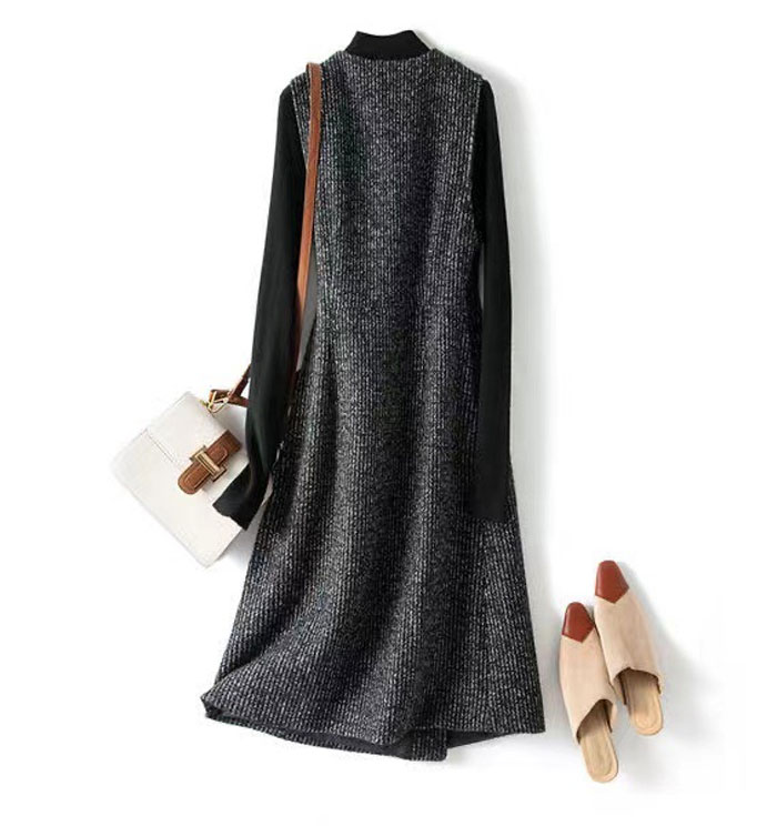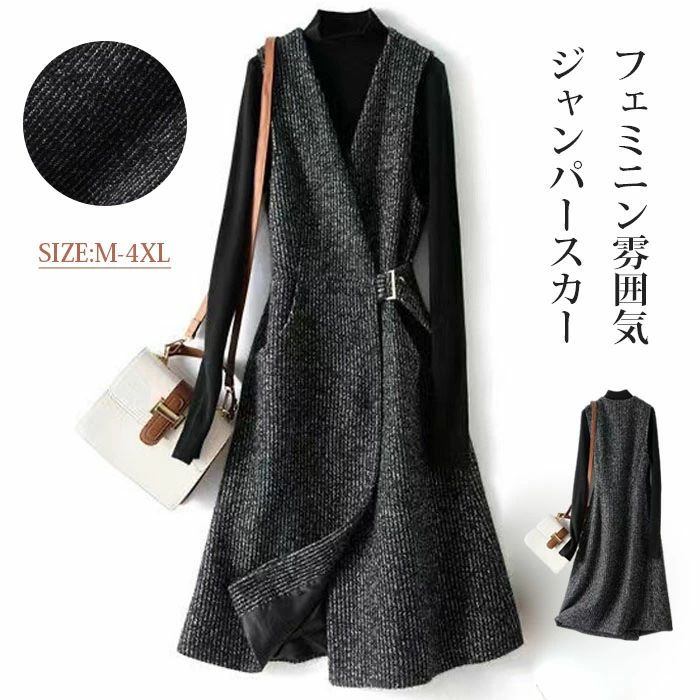 ジャンスカ ジャンパースカート ノースリーブ Aライン スリット Vネック ウール風 ミモレ丈 ロング丈 秋 大人 大きいサイズ オールイ 冬