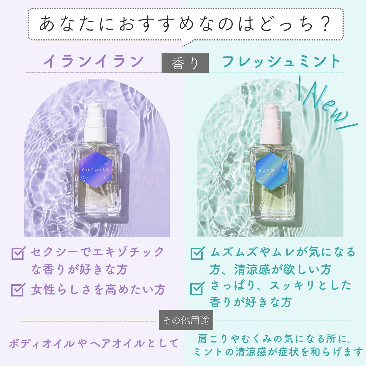 sunoiroヴィーガンフェミニンオイ イランイランの香り フレッシュミントの香り 【お得セット】イランイラン×2 【お得セット】イラン×ミント 【お得セット】ミント×2