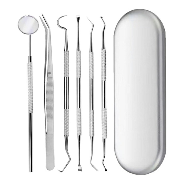 高級ステンレス製歯用ツール、ご家庭でも使えるプロ用セット。自宅で本格汚れ除去、充実の6点セット。