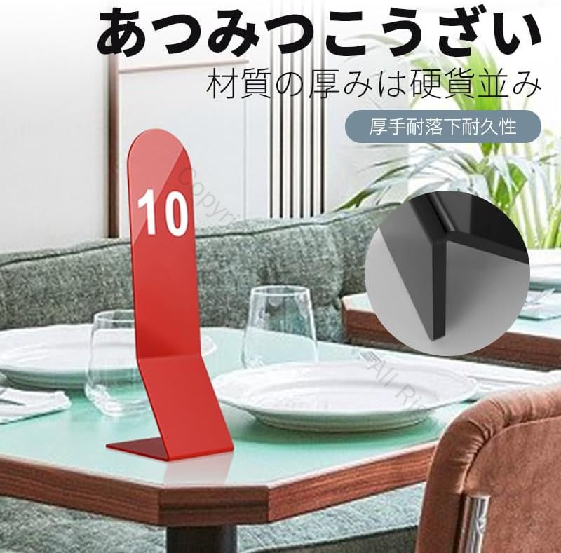 傷つきにくく、表面も滑らかで手を痛めない。レストランのテーブル番号は高品質のアクリル素材でできており、頑丈で信頼性が高く、軽量で、壊れにくく、再利用可能で、絶妙な仕上がりで、耐久性があります。