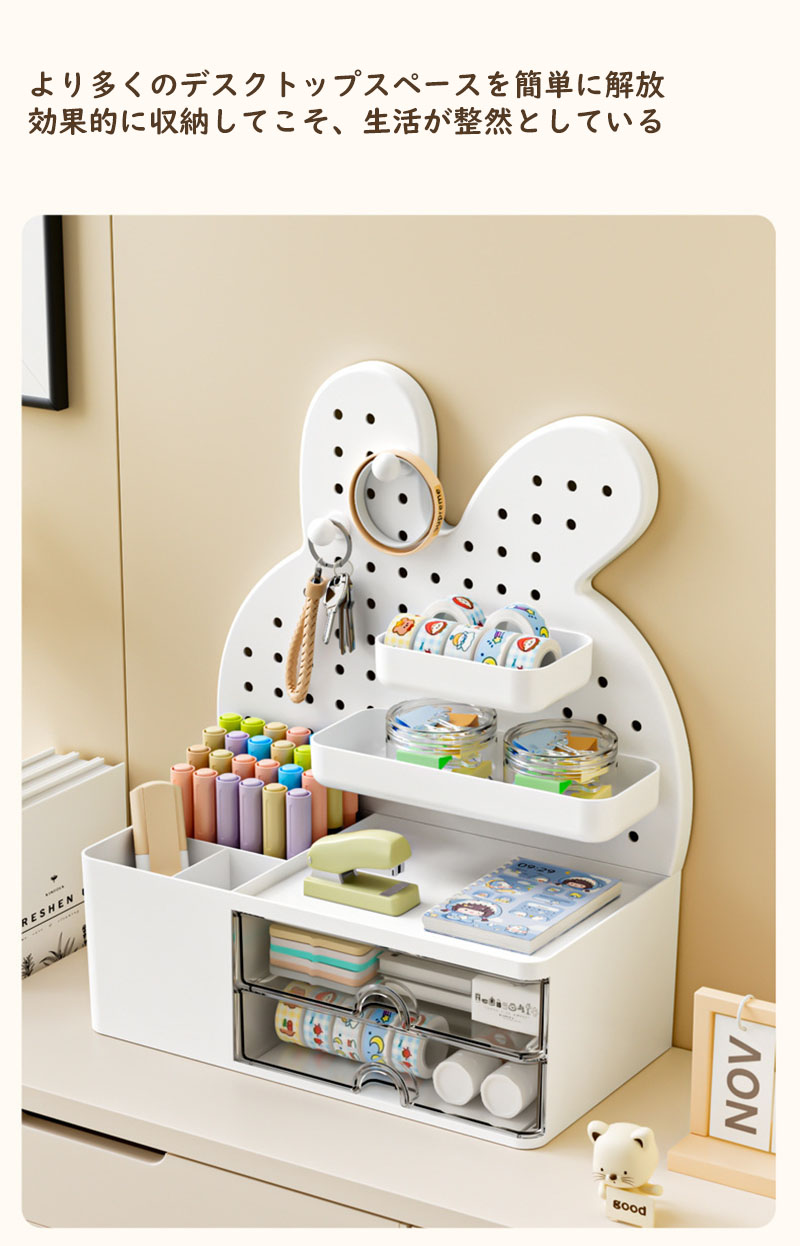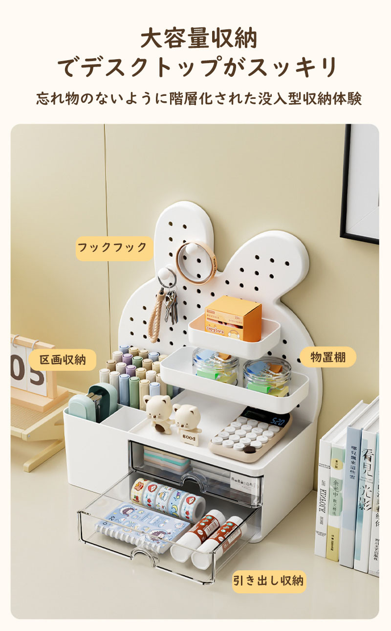 小物 文房具 ボックス 収納 卓上 オフィス デスク デスクオーガナイザー 滑り止め 文房具収納 化粧品 事務用品 かわいいうさぎ収納 書類ケース
