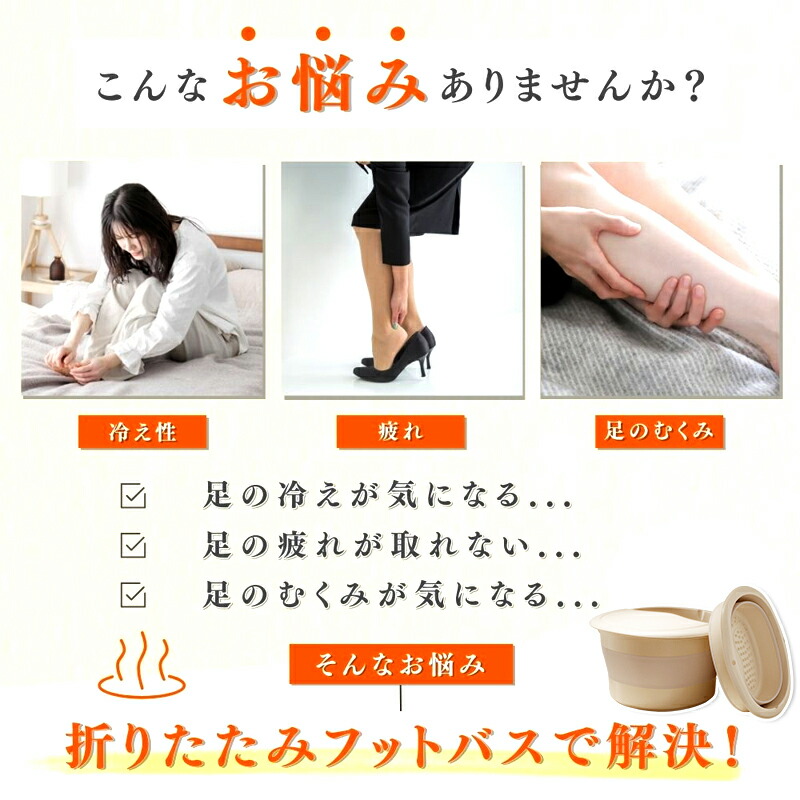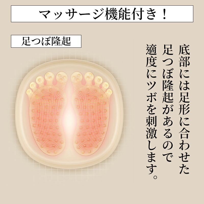 商品説明 お湯を入れるだけで、いつでも簡単に足湯を楽しめるフットバスです。