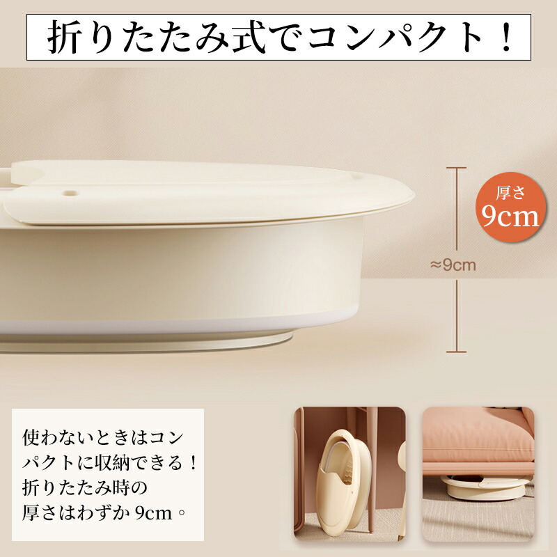 フットバスは便利な折りたたみ式。必要な時にサッと取り出して、使い終わったらコンパクトに収納できます。