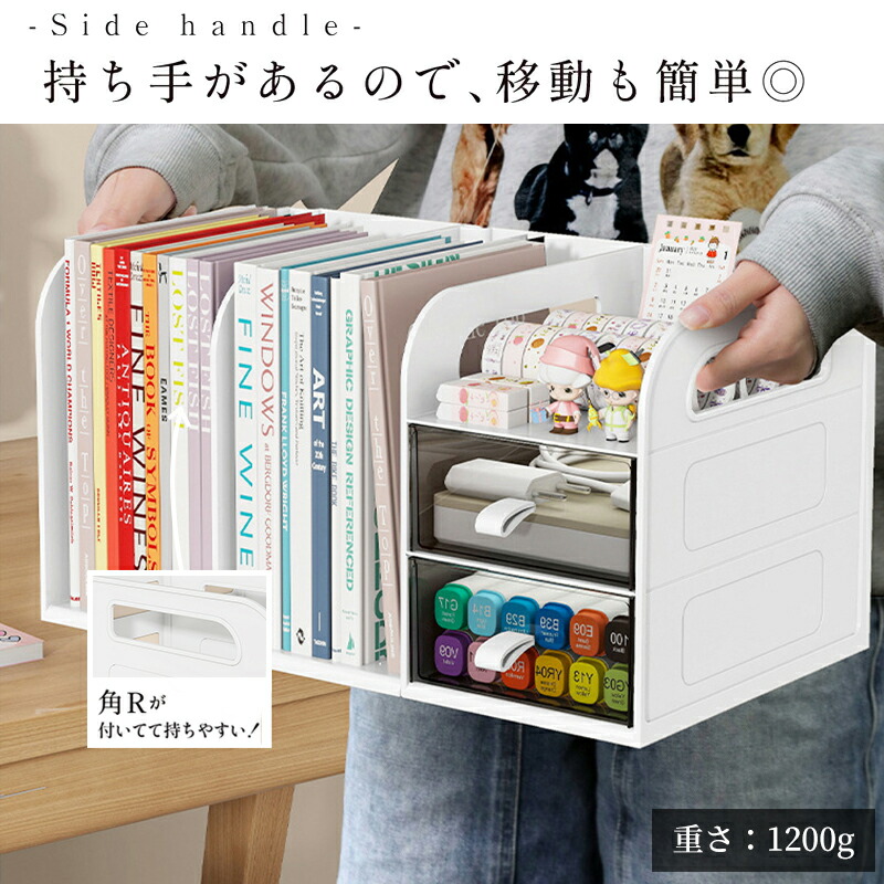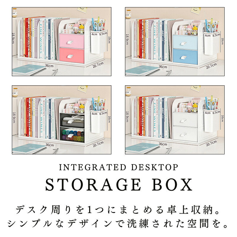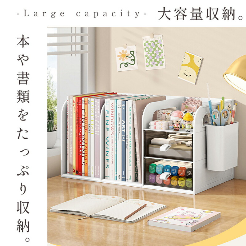 ・本、書類、ファイル、文房具、化粧品、アクセサリーなどデスク周りをスマートに収納。会社、自宅のデスク周りを洗練された空間に。