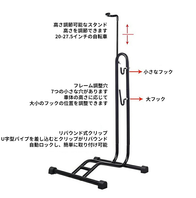 立て杆高さ調節:立て杆の高さを変えることで、20~27.5 インチの自転車まで幅広く対応できます。