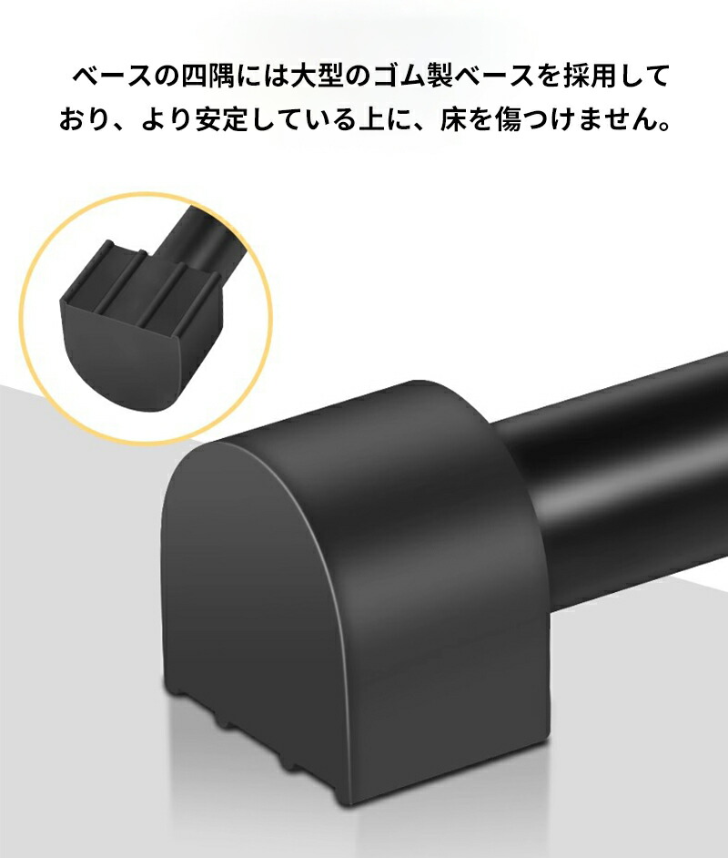 大型ゴムフットパッド:ベース四隅のゴム製フットパッドは、タイル・木製床など多様な床材に対応。床を傷つけず、滑りにくく安定設置可能です。