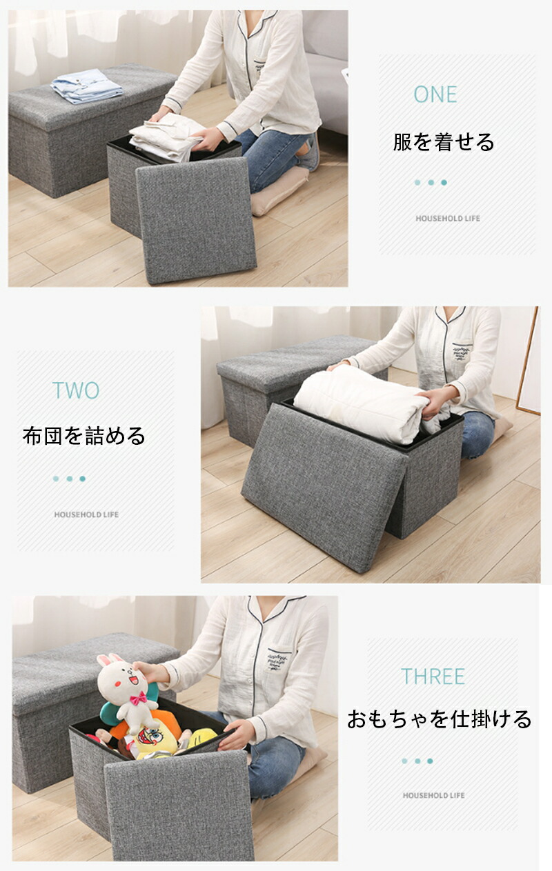 折りたたみ収納スツール 収納 スツール ベンチ ボックス 椅子 イス チェア オットマン 収納BOX BOXチェア ファブリック 小物収納 足置き ボックススツール 収納ベンチ 収納ボックス フタ付き