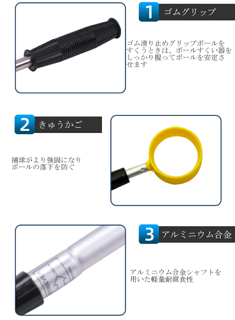 ゴルフ ボール拾い器 ゴルフボールピッカー ゴルフボールキャッチャー ボールレトリバー 拾い上げ収集器 3段-6段 伸縮可能 ボール キャッチャー 収縮可能 軽量 回収器 回収機 アウトド ボール回収