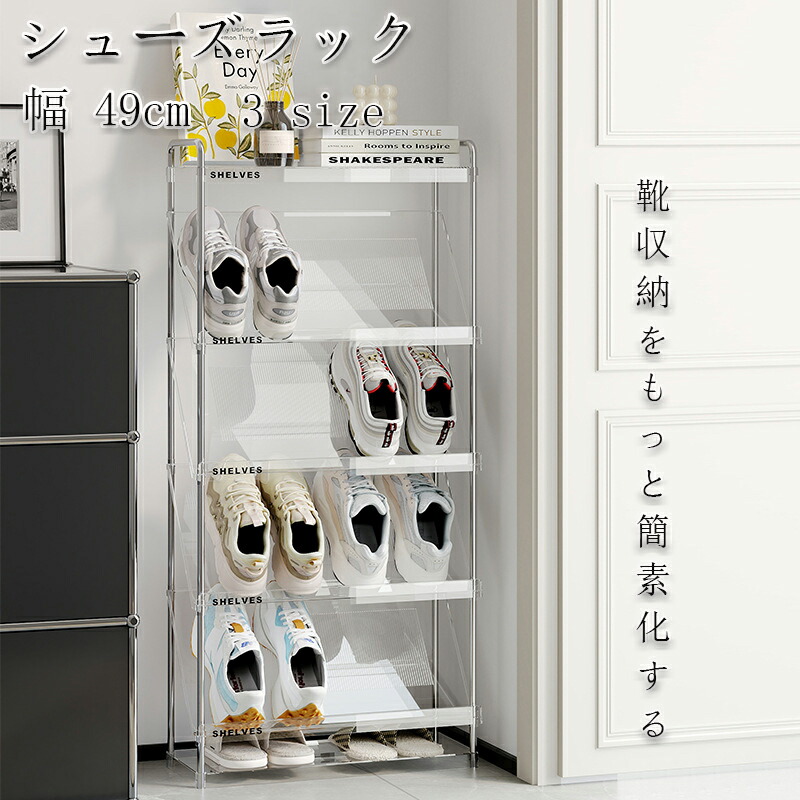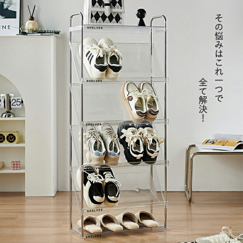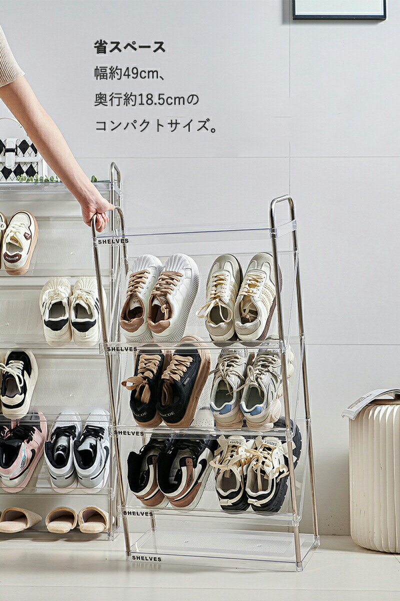 斜め 簡易 シューズラック スリム コ ベージュ 透明 四段 五段 六段