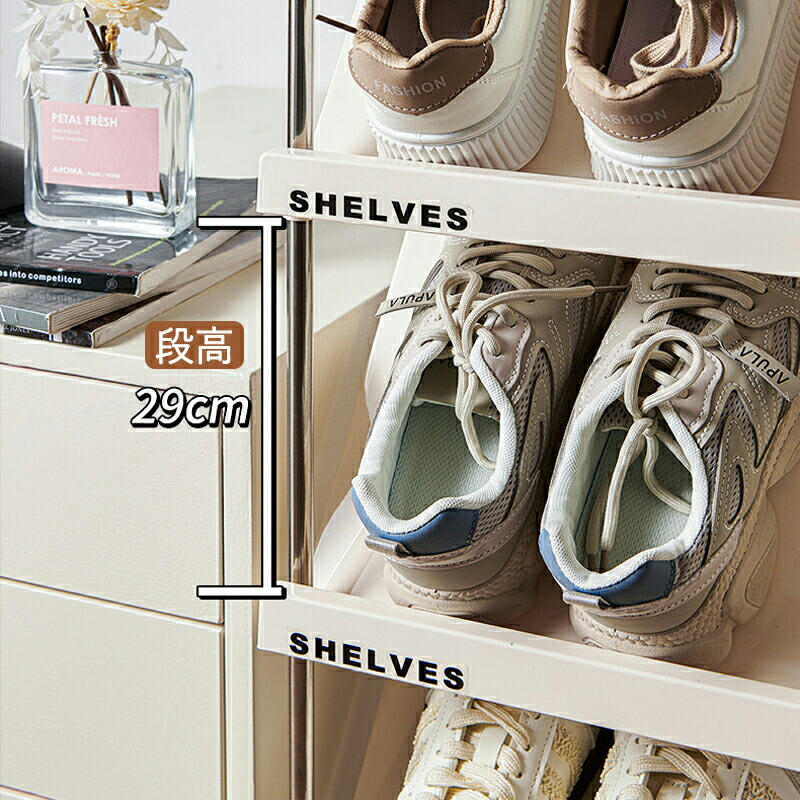 靴を斜めに収納することで、省スペースで使用できます。