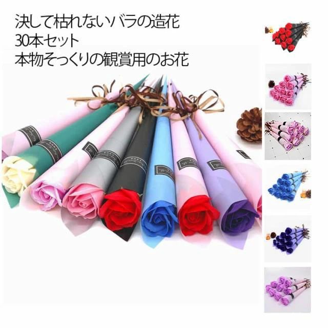 ソープフラワー 一輪 バラ 30本セット 薔薇 造花 花束 ブーケ ローズブーケ シャボンフラワー おしゃれ 永生花 枯れない花 誕生 可愛い