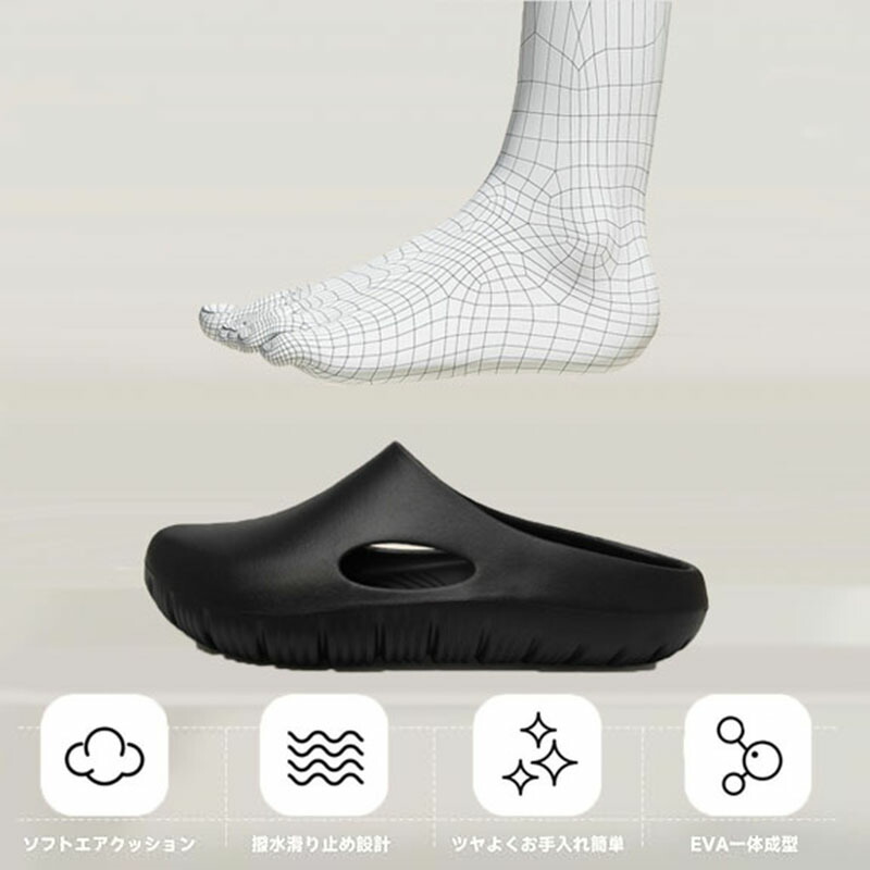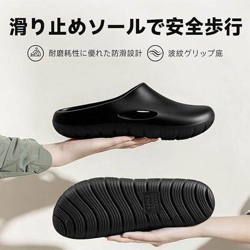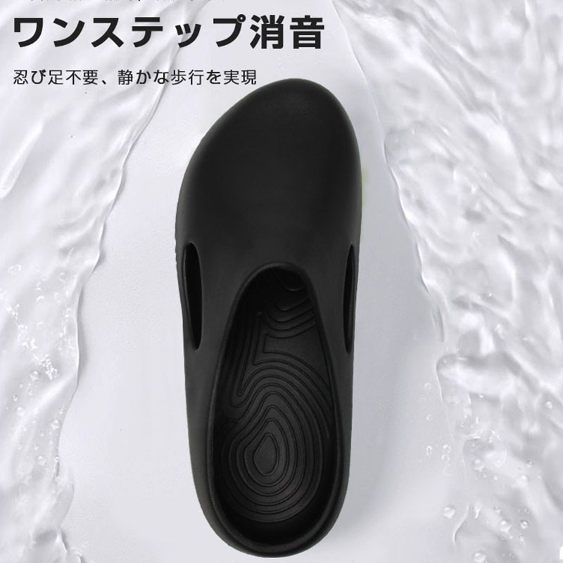 【静音設計】防音ソールを採用し、室内でも気兼ねなく歩けます。従来のサンダルに比べて歩行音が約70%低減され、夜間やマンション生活でも周りを気にせず快適にご使用いただけます。