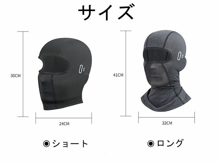 2枚セット バラクラバ 夏用 目出し帽 ブラック(ショート) グレー(ショート) ブラック(ロング) グレー(ロング) ブラック(ショート) グレー(ショート) ブラック(ロング) グレー(ロング)