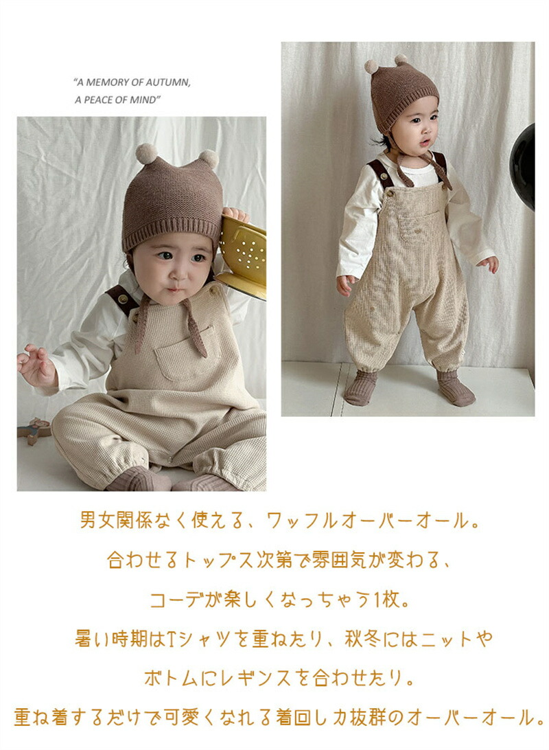 サロペット ベビー ワッフル オーバー ベビー ベビー服 ファッション オーバーオール 人気 66cm 80cm