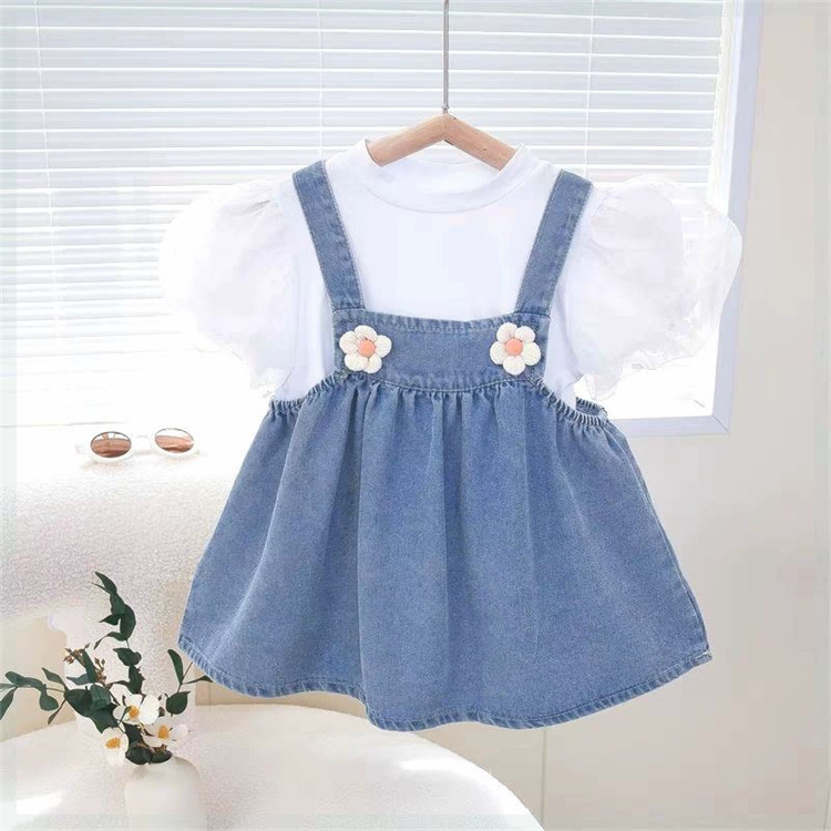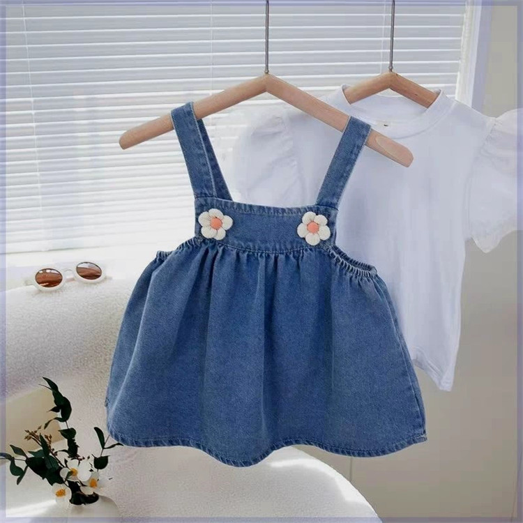 ベビー ワンピース 夏 赤ちゃん ドレス 半袖 Tシャツ ジャンパースカート サロペット スカート デニムワンピース ベビー服 子供服 セットアップ 2点セット キッズ 韓国子供服 上下セット 誕生日 出産祝い 写真撮影 春夏 通学着 通園着 80cm 90cm 100cm 110cm 120cm 130cm