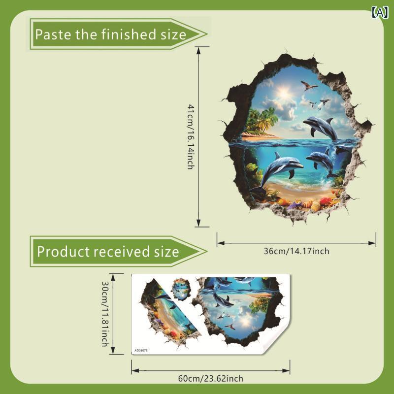 ウォールステッカー キッズ 子供用 かわいい イルカ 壁穴風デザイン リビング 子供部屋 寝室 居間 粘着式 PVC キャラクター 模様替え インテリア 防水