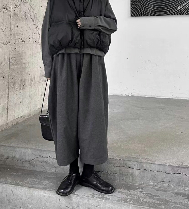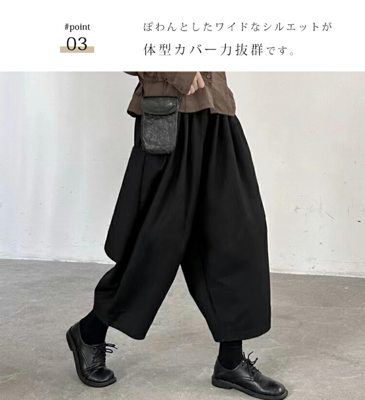 春まで穿ける レディース 秋冬 バルー ボトムス キュロットスカート 新作 ブラック グレー コクーン ワイド
