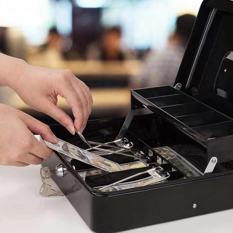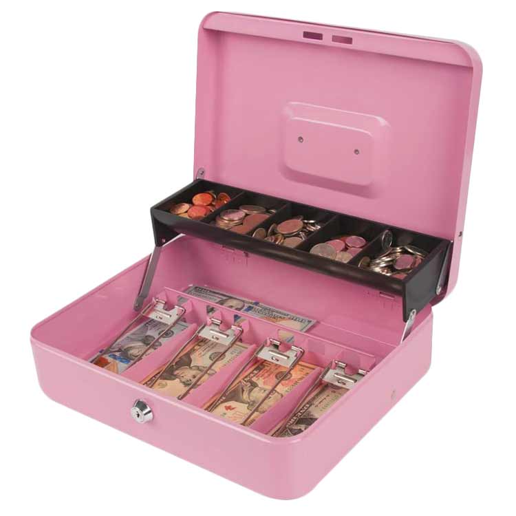 【現金の管理を楽にします】お店やイベントで使うレジとしての現金管理を楽にします。独自のカギつきで防犯対策にもなります。 【多機能で使いやすい】上段トレイ付きで使いやすいです。また、紙幣を固定できるクリップつきです。 【たキーロック】鍵二本付きで、防犯効果UP。鍵で扉が簡単に開くため誰だも楽に操作でき、店舗などでの忙しい現金管理に便利です。 【パスポートなど貴重品管理にも】通帳や印鑑、パスポートなど貴重品の管理にも使えます。耐久性も高く長期間お使いいただけます。 【多用途で使用可能】子供の貯金箱から大人の小物、お店の会計事務用品入れまで、幅広く活躍してます。ビーズやボタンなどの小物からジュエリー、お金の管理まで幅広く活躍します。