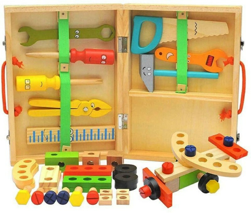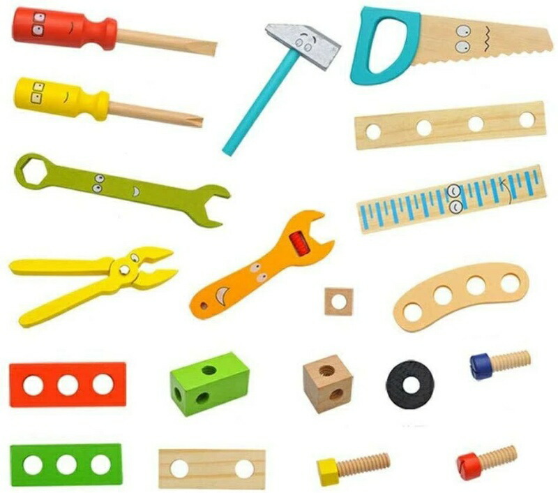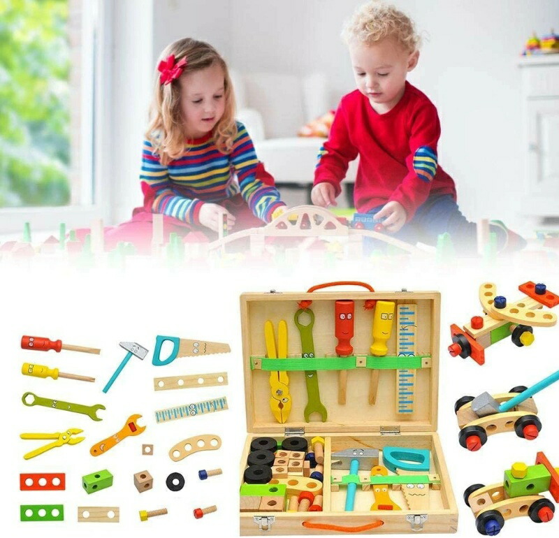仕様 商品情報 商品紹介 【教育プロモーター】 ツールキットは、子供の認知能力、実践能力、および脳の発達を強化できます。毒性のない仕上げで子供に安全な素材であり、3歳以上に適した小さな手や指に適しています。 【実用的】 43ピースの木製ツールボックスは、のこぎり、定規、プラスドライバー、ストレートドライバー、マレット、爪ハンマー、レンチ、釘、ネジ、プライヤー、さまざまな木製部品など、子供たちの想像力を刺激するのに役立ちます。 【遊び方は無限大】 動物、乗り物、自分だけのオリジナルも簡単に作れます。新しいものが出来たら、一緒に名前を考えてあげて下さいね。 【幅広い用途】 ツールキットは、ロールプレイング、教育学習、家族の集まり、屋内外での活動に最適で、子供にツールとその機能について教えることができます。 【男の子も女の子も積み木のおもちゃが大好き】 一人で遊ばせるのが危険な工具も、木製なら安心。手に収まるちょうど良いサイズ。誕生日プレゼント、クリスマスプレゼントとして、はじめての大工さんはいかがですか。