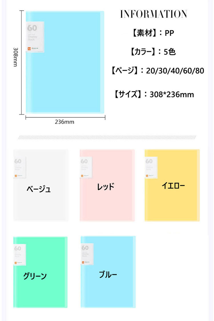 20 30 40 60 80ページ ク 文房具 事務用品 ファイル バインダー クリアケース クリアファイル 豊富 ベージュ イエロー レッド グリーン ブルー 20ページ 30ページ 40ページ 60ページ 80ページ
