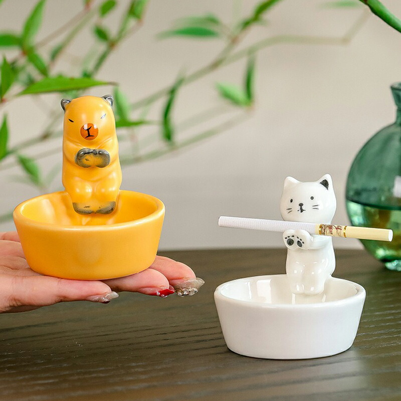 灰皿 ネコ型 陶器 アッシュトレイ 喫 ホビー 人気 ネコ カピバラ