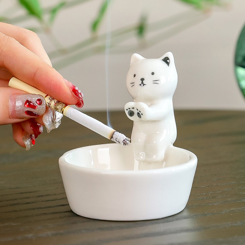 灰皿 ネコ型 陶器 アッシュトレイ 喫煙具 吸い殻入れ タバコ置き かわいい 猫 ねこ おもしろ カピバラ 卓上 机上 セラミック灰皿 インテリア 小物入れ 客室 リビング オフ 置物