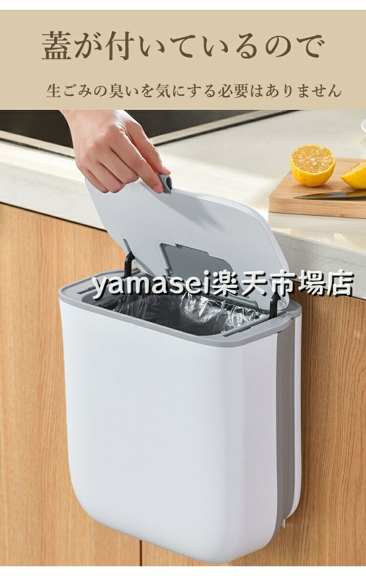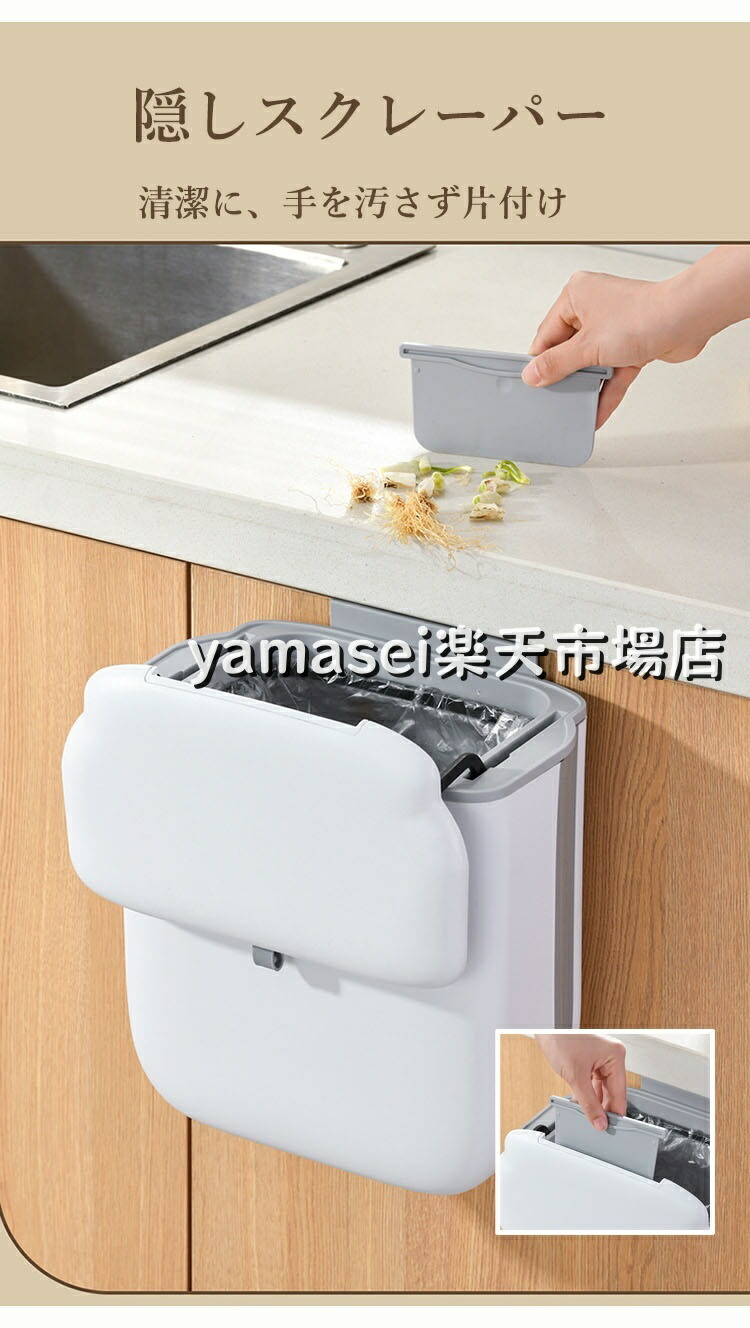 ゴミ箱 壁掛け フタ付き 臭い漏れない インナーゴミ箱内蔵 7L 大容量 折りたたみ スリム 省スペース スライド開閉 簡単取り付け ドア掛け 扉掛け 壁面収納 キッチン リビング 寝室 トイ 洗面所