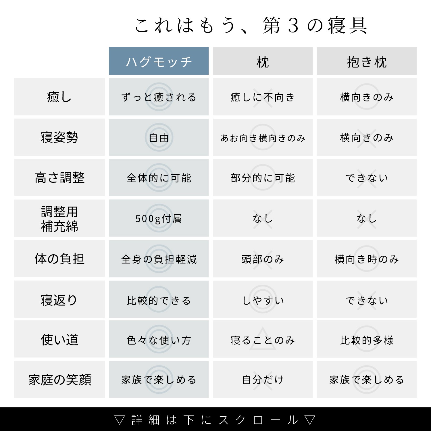構成:本体、枕カバー(取り付け済み)、補充綿550g