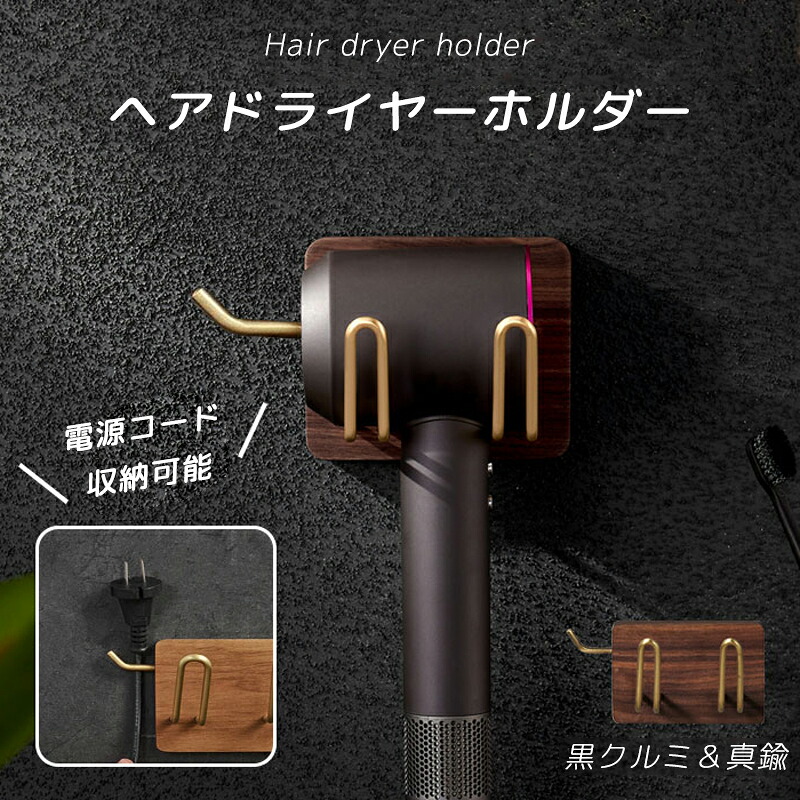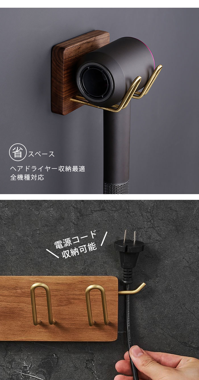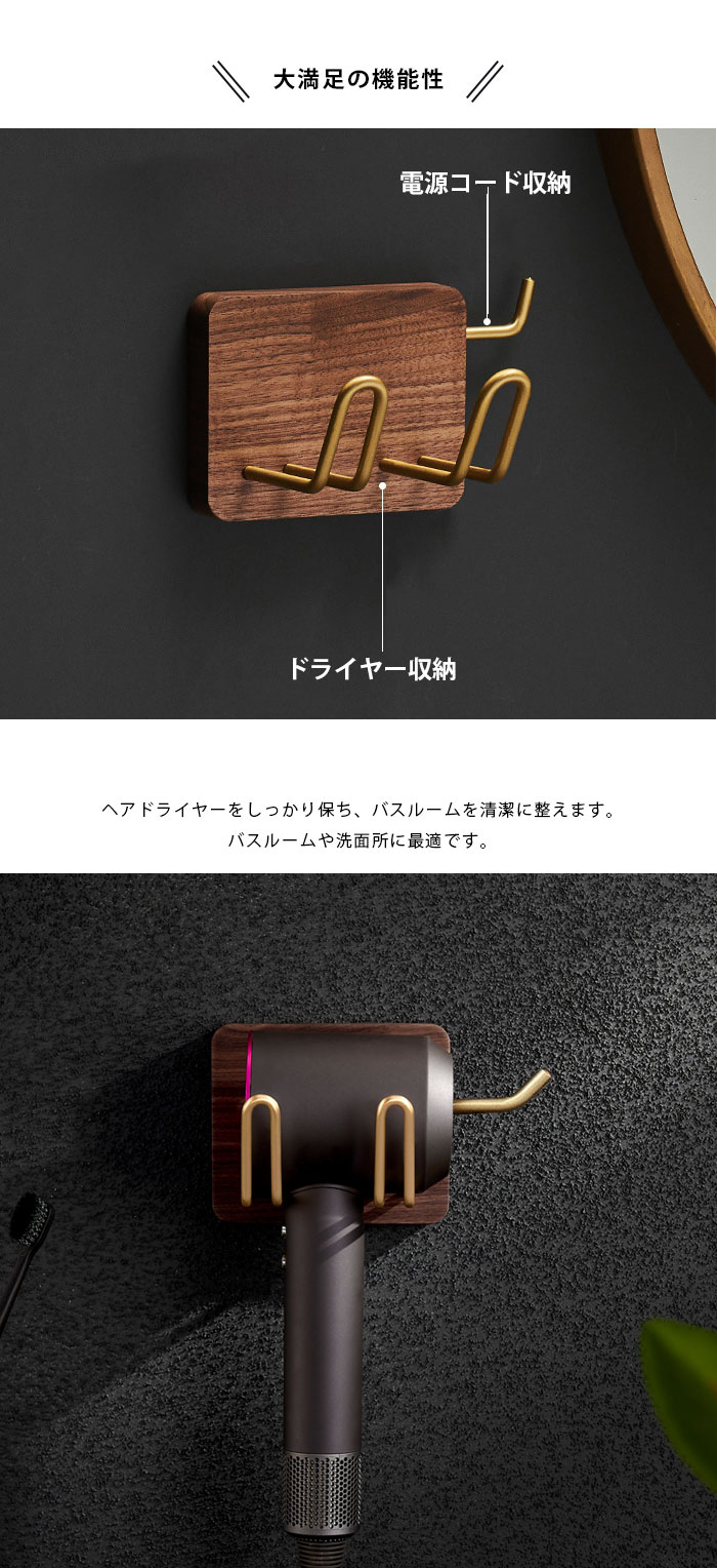 ドライヤー置き ヘアドライヤーホルダー 電源コード収納 ドライヤーホルダー 壁掛け式 黒クルミ 木製 真鍮 ヘアドライヤーホルダー 洗面 収納 ドライヤー入れ ヘアドライヤー置き 耐久性 錆びにくい バス用品 高品質素材 機能性 取付簡単 高級感 豪華感天然木製 黒クルミ 洗面所 絶妙なデザイン 自宅用 美容室 温泉 プレゼント 引越し 内装 インテリア 収納 小物 お手洗い 一人暮らし