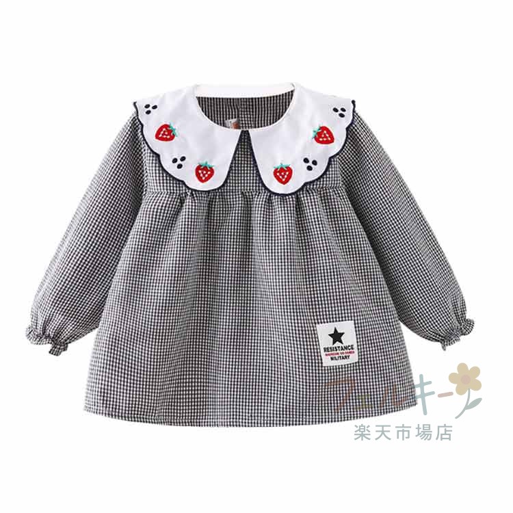 女の子 子供服 防水エプロン 長袖スモック お砂場着 外遊び 絵画 保育園 幼稚園 綿 コットン チェック柄 可愛い 90 100 110 ギフト