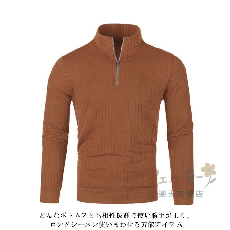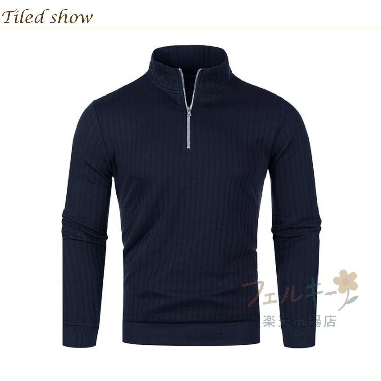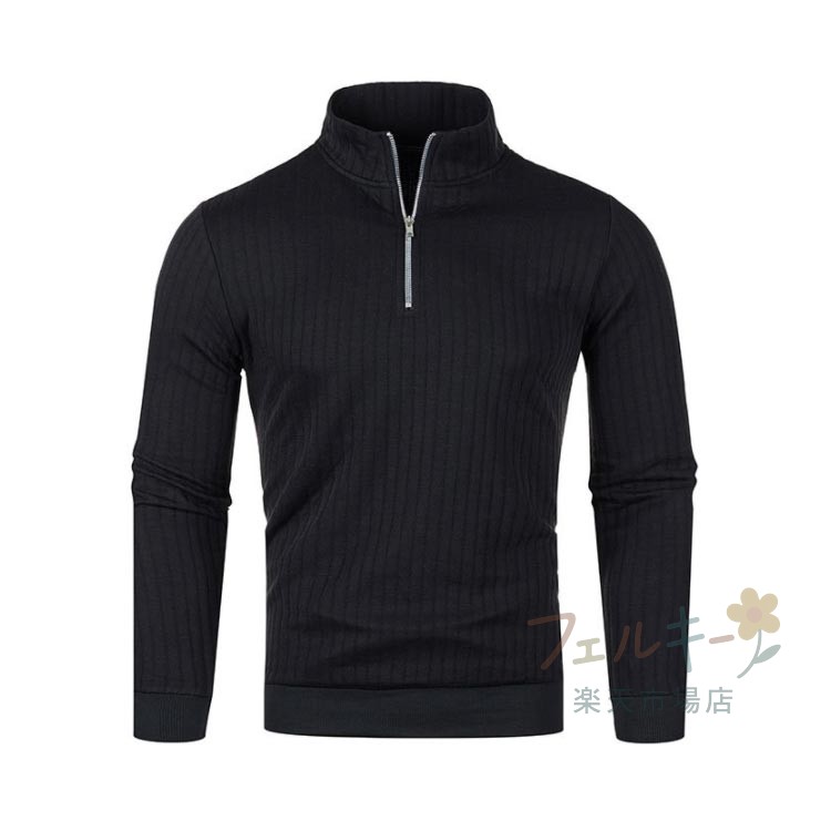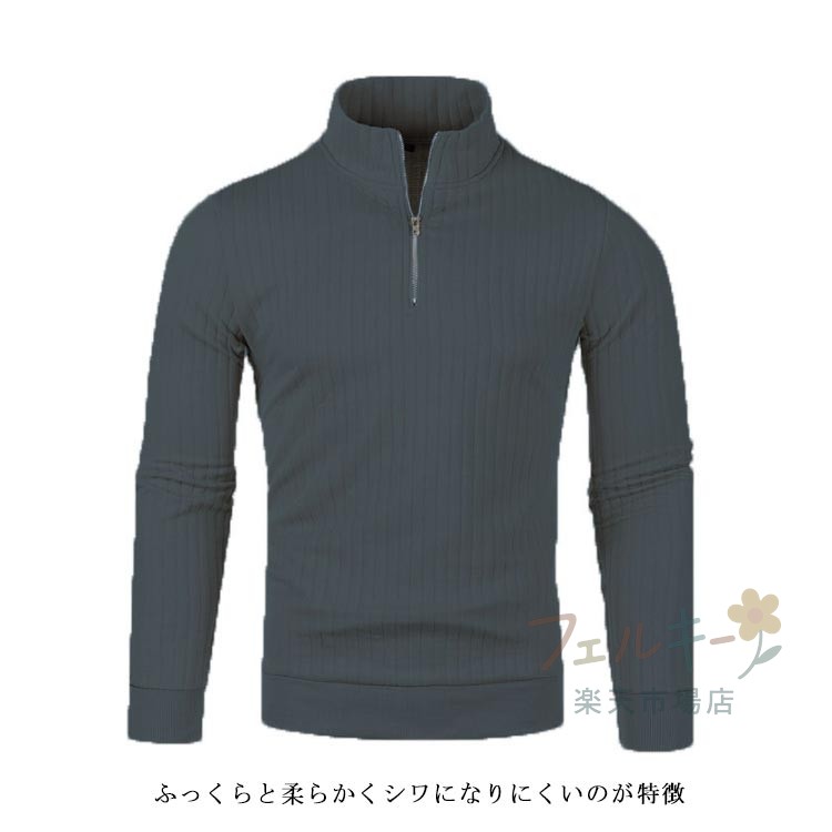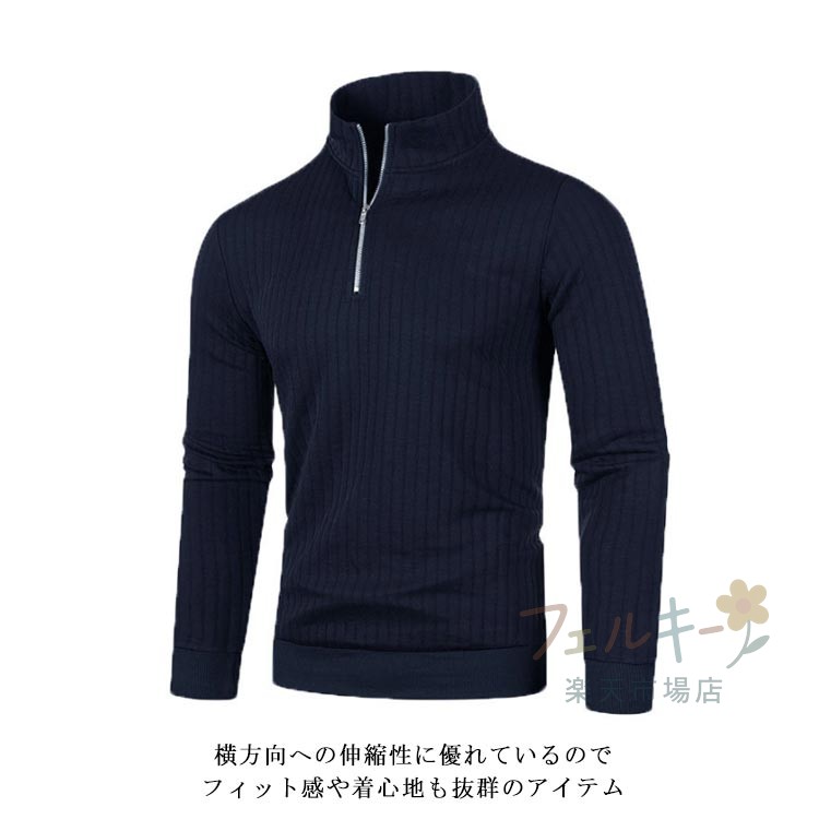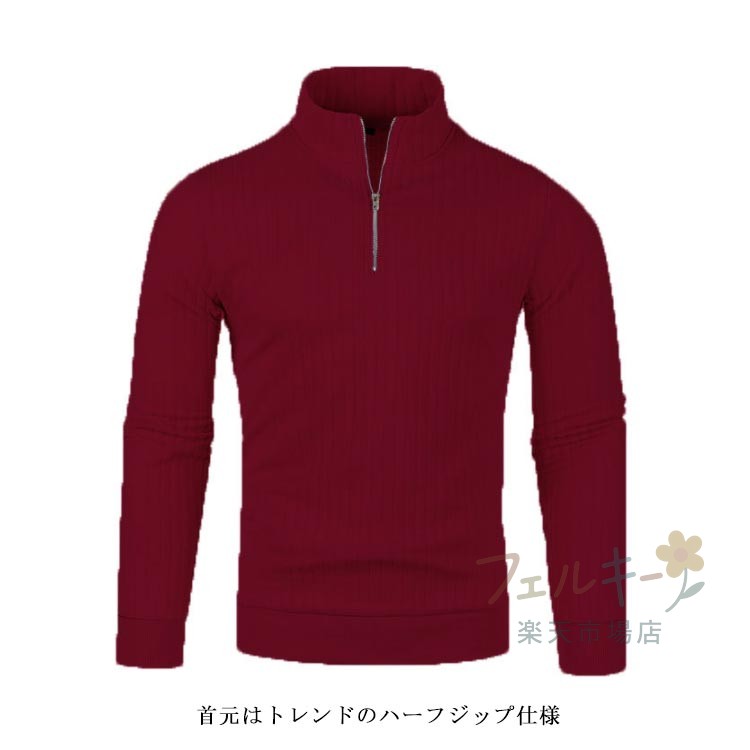 ハーフジップ ニット セーター メンズ リブ編み 長袖 防寒 秋冬 ユニセックス スポーツ ゴルフウェア シンプル スリム 暖かい おしゃれ 無地