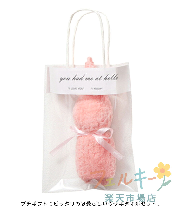 うさぎ タオル ハンドタオル 10個セット 手提げ袋付き プチギフト お礼 お返し 贈り物 幼稚園 保育園 退職 引っ越し 挨拶 結婚式