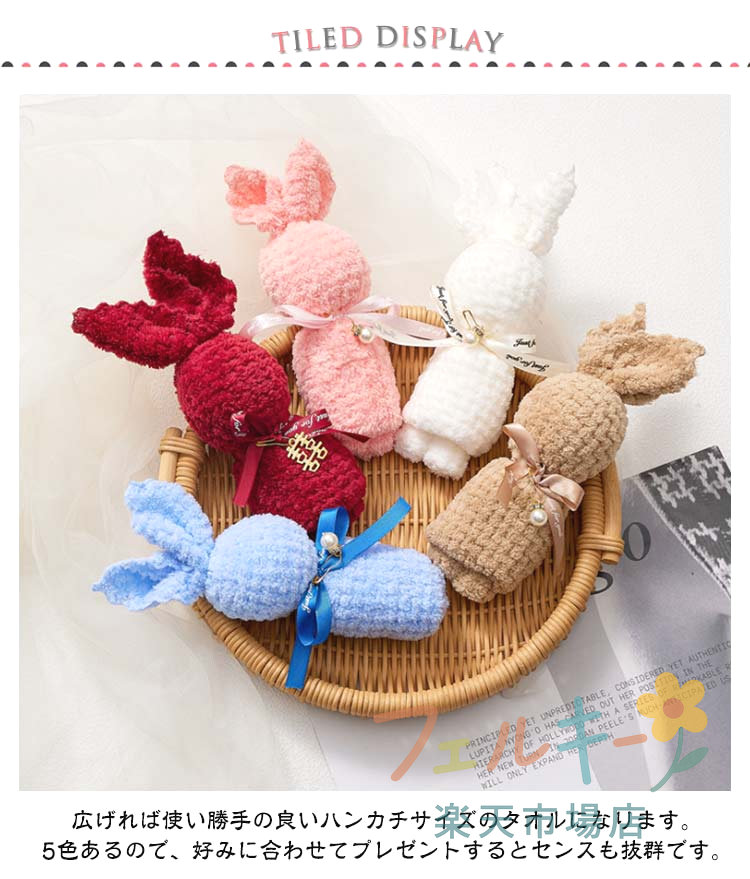 うさぎ タオル ハンドタオル 10個セ タオル セット 通販 ホワイト(手提げ袋) ピンク(手提げ袋) ブルー(手提げ袋) ブラウン(手提げ袋) ワイン(手提げ袋) 5色ミックス(手提げ袋)