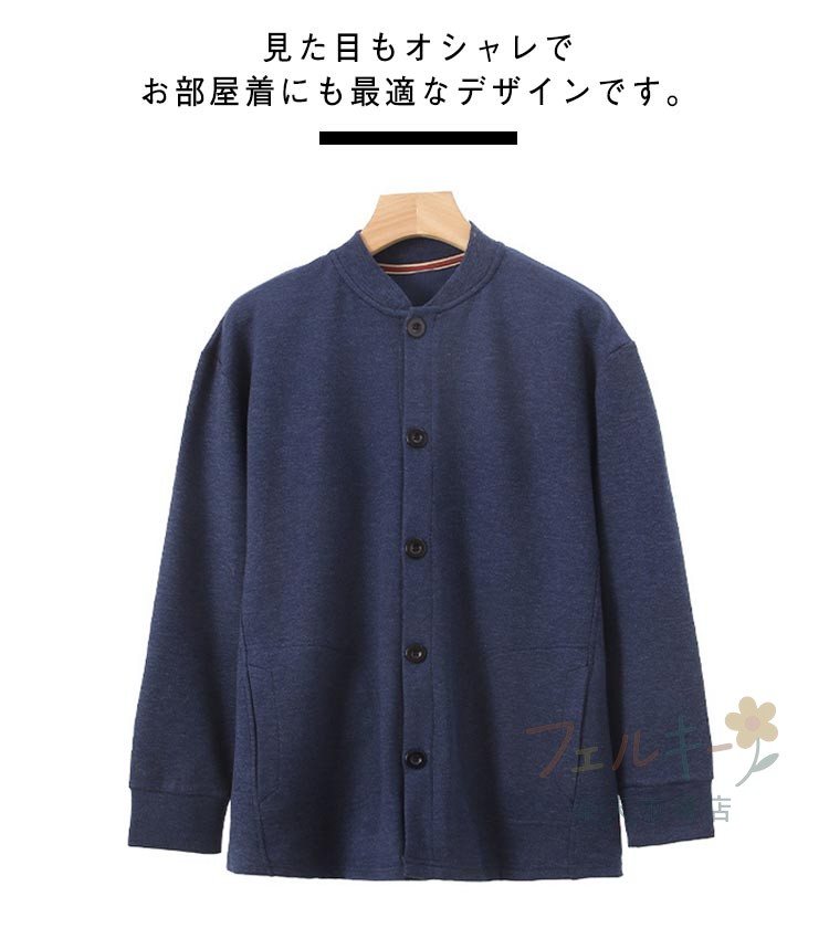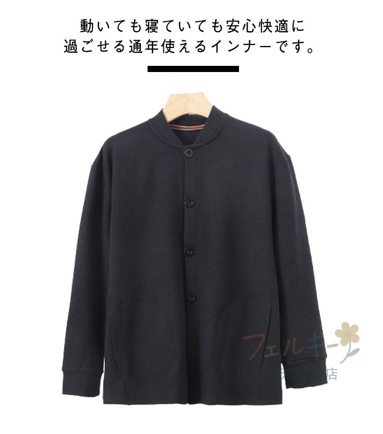 介護用前開きインナーシャツ メンズ長袖 ネイビー ダークグレー XL 2XL 3XL 4XL 5XL