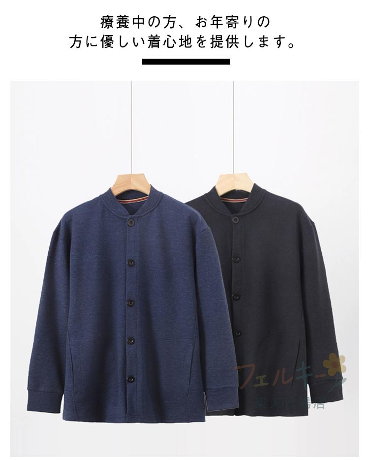 介護用前開きインナーシャツ メンズ長袖Tシャツ 吸汗速乾通気性素材 高齢者入院用肌着 ゆったりサイズ対応
