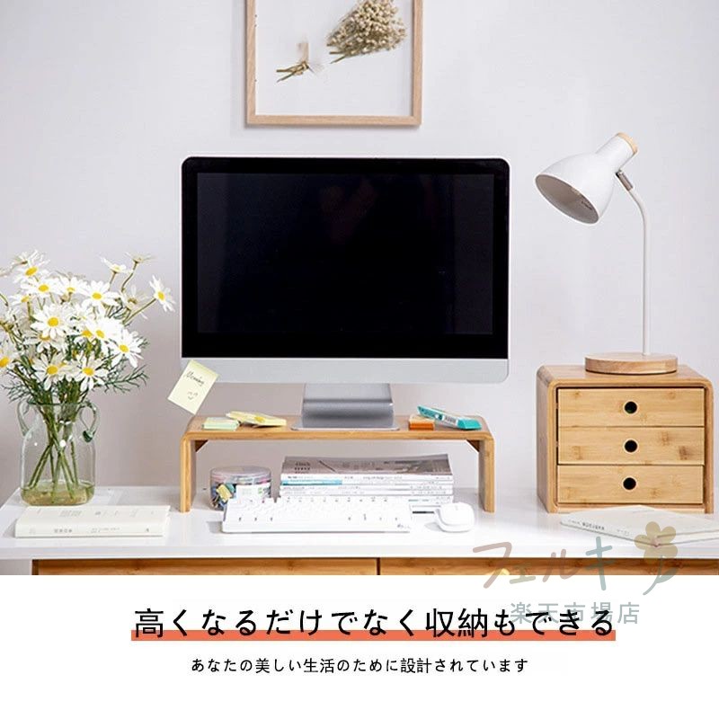 竹製 モニターラック 引出し付き シンプルデザイン 卓上収納 ディスプレイ台 ノートPC台 デスク上スタンド ナチュラル キーボード収納