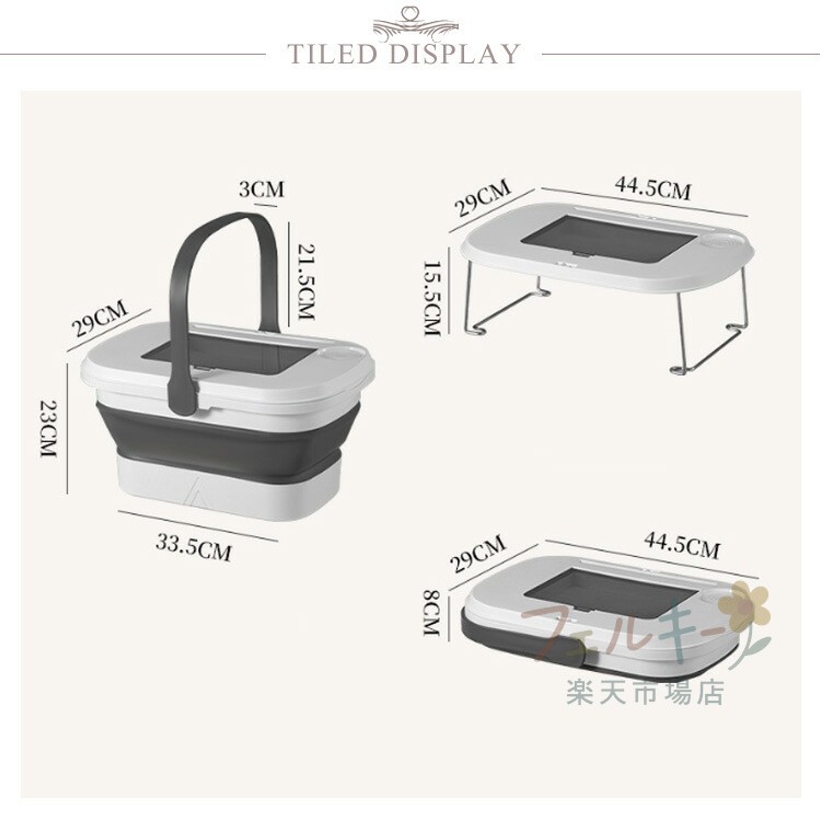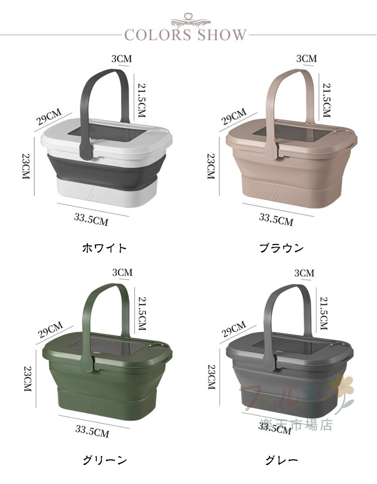 3way 折りたたみ バスケット テー ホワイト ブラウン グリーン グレー