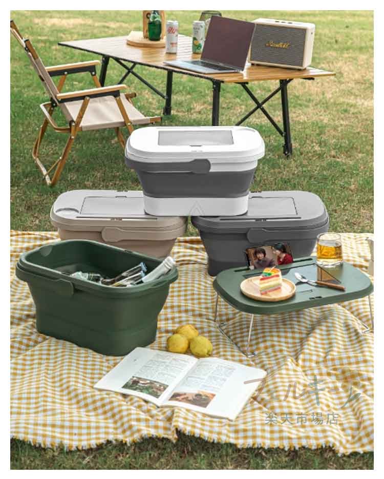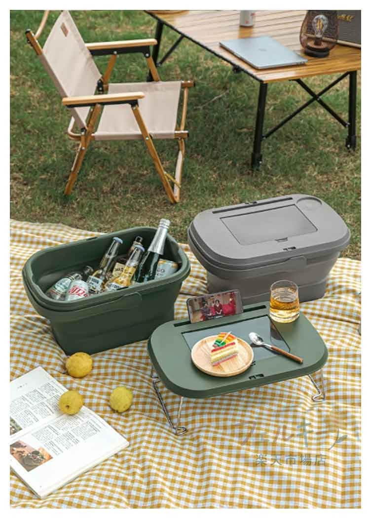 3way 折りたたみ バスケット テーブル 脚付き ピクニック 収納 コンパクト 軽量 レジャー アウトドア キャンプ 20L 花見 BBQ ハンディテーブル