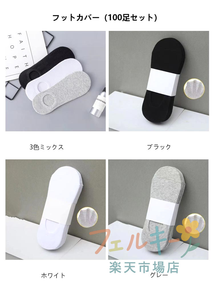 使い捨て靴下 100足セット 抗菌 吸 ユニセックス 靴下 レッグウェア 人気 3色ミックス ブラック ホワイト グレー ハイ(100足セット) ロー(100足セット) フットカバー(100足セット)