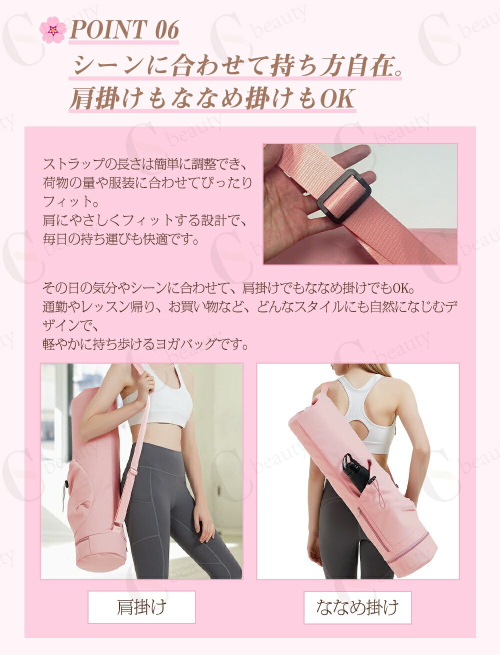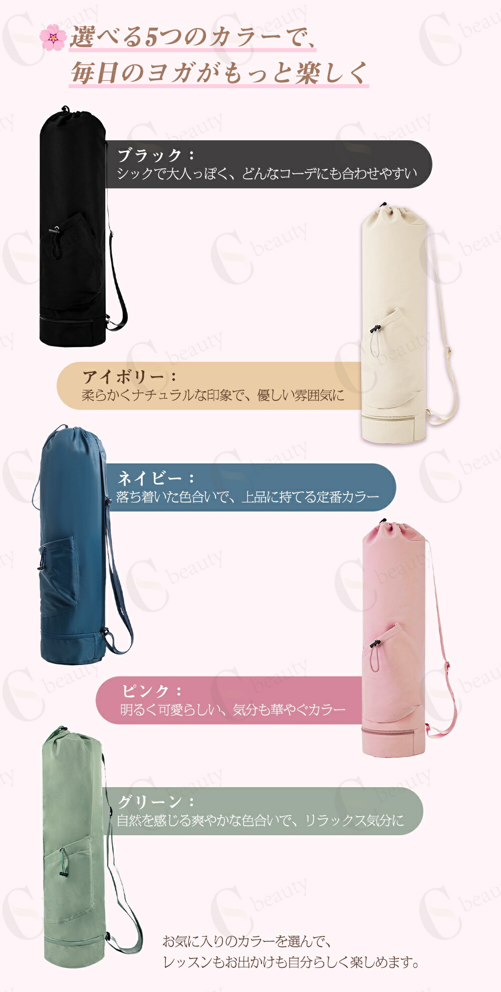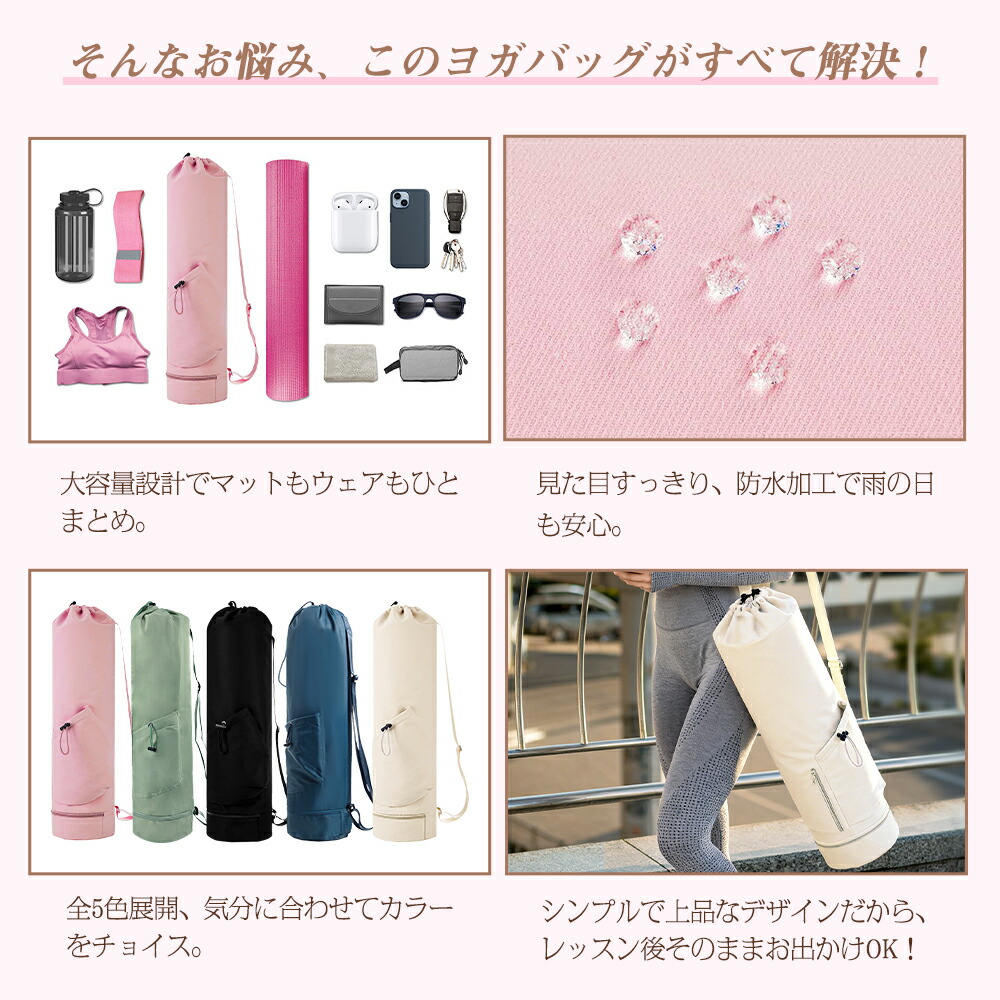 ヨガバッグ ヨガマットケース ショルダ スポーツ アウトドア 通販 ブラック ネイビー ピンク アイボリー グリーン