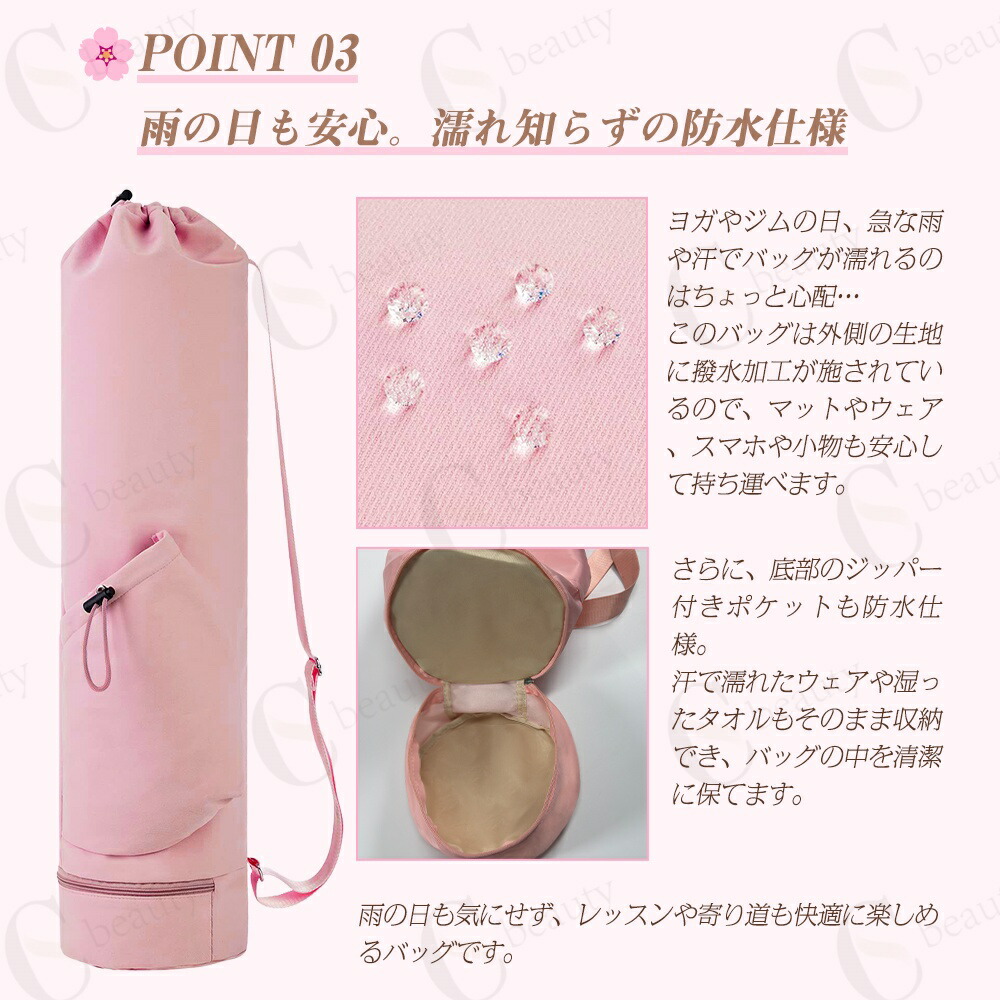 ヨガバッグ ヨガマットケース ショルダータイプ 大容量 撥水加工 ヨガマットバッグ ヨガマット用バッグ ケース 10mm 大きめ 折りたたみ 軽量 かわいい 小物収納 水筒収納 折りたたみ傘 おしゃれ