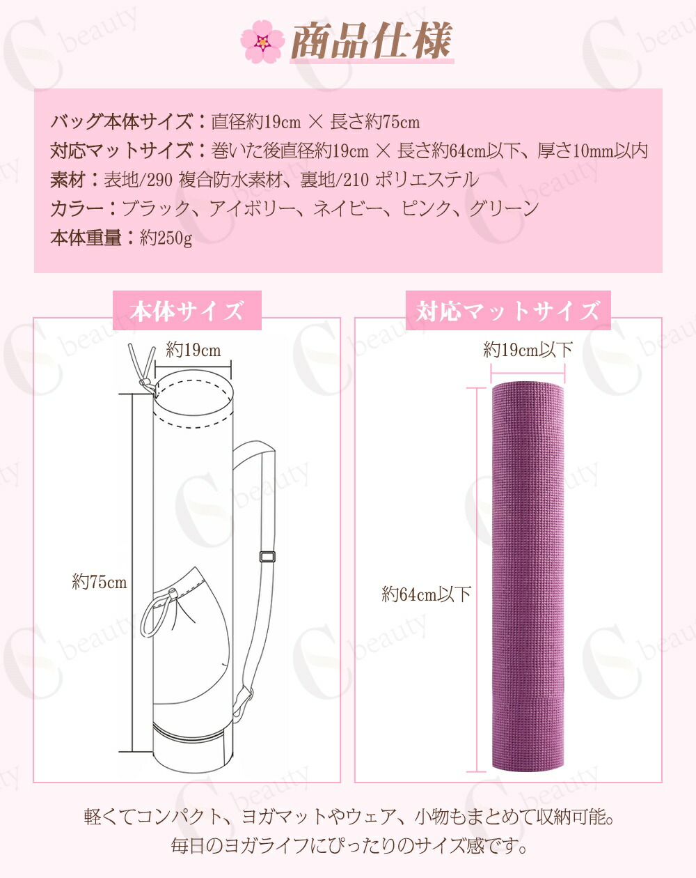 対応マットサイズ:直径約19cm × 長さ約64cm以下、厚さ10mm以内