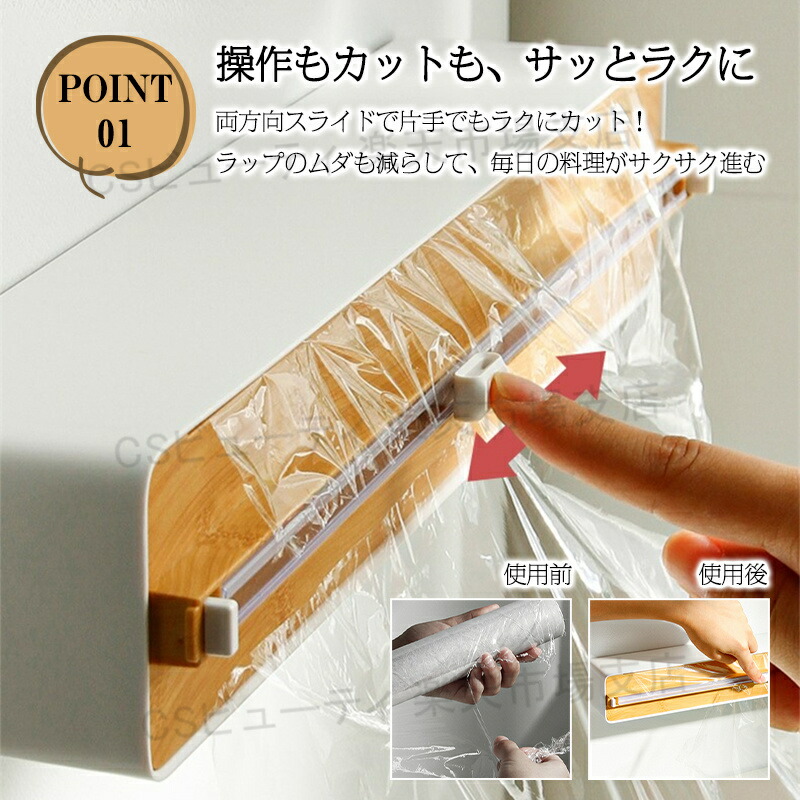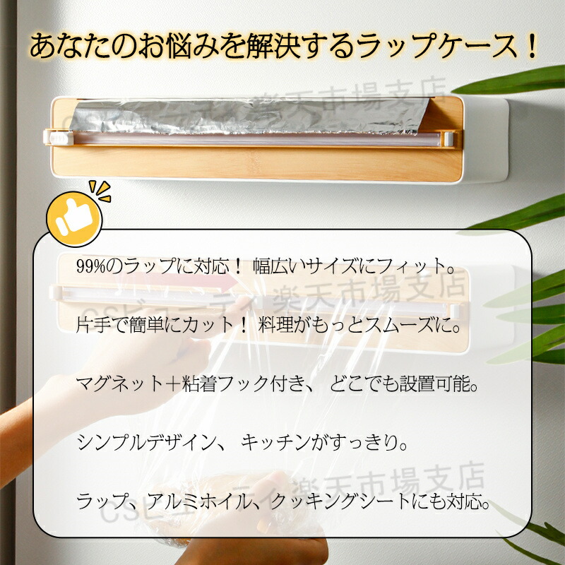 ラップケース ラップカッター ラップホルダー マグネット スライドカッター ラップカッターケース 片手で切れる 壁 クッキングシート アルミホイルケース カッター付 冷蔵庫