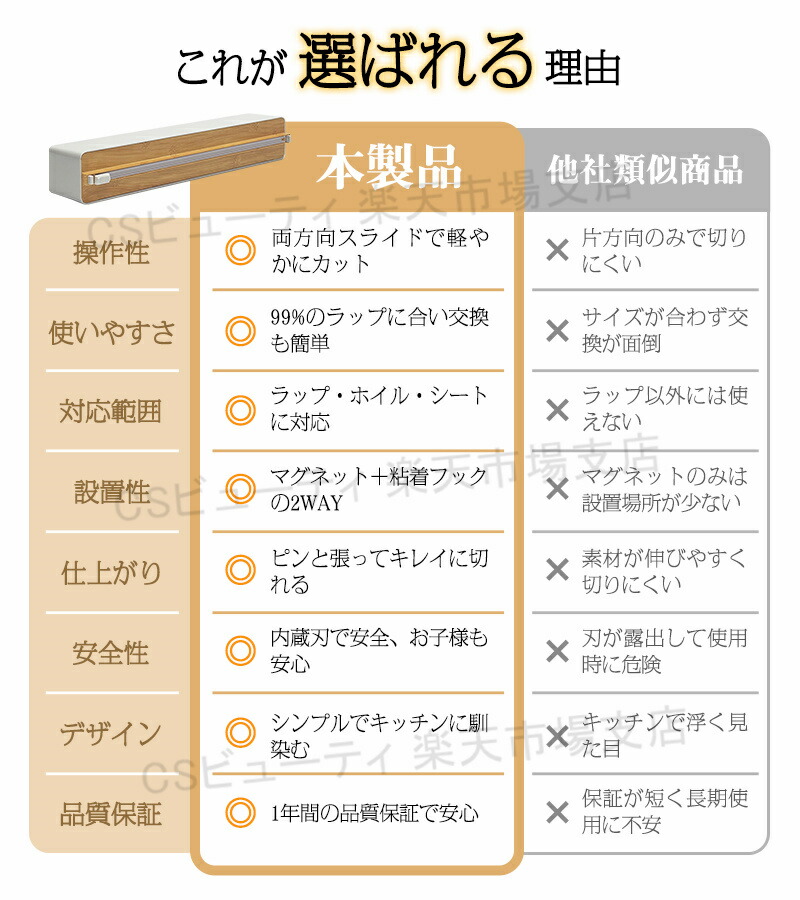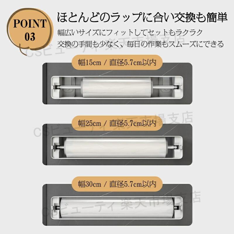 ほとんどの市販ラップに対応。サイズを気にせず交換でき、毎日の作業がスムーズに。